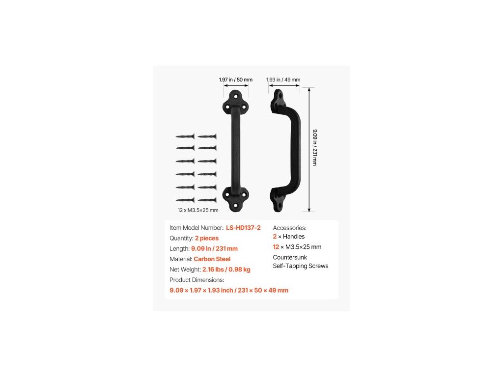 Délka: 9,09 palce / 231 mm,Číslo modelu položky: LS-HD137-2,Množství: 2 kusy,Materiál: Uhlíková ocel,Rozměry výrobku: 9,09 × 1,97 × 1,93 palce / 231 × 50 × 49 mm,Čistá hmotnost: 2,16 lbs / 0,98 kg