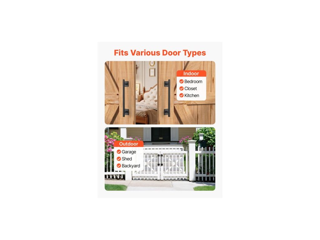 Klika na dveře stodoly, 2 ks rustikální klika na plotovou bránu 320 mm, povlak odolný proti korozi, odolné kliky z uhlíkové oceli pro venkovní brány, snadná instalace, kovové úchyty pro posuvné dveře do garáže a kůlnyStylové a praktické