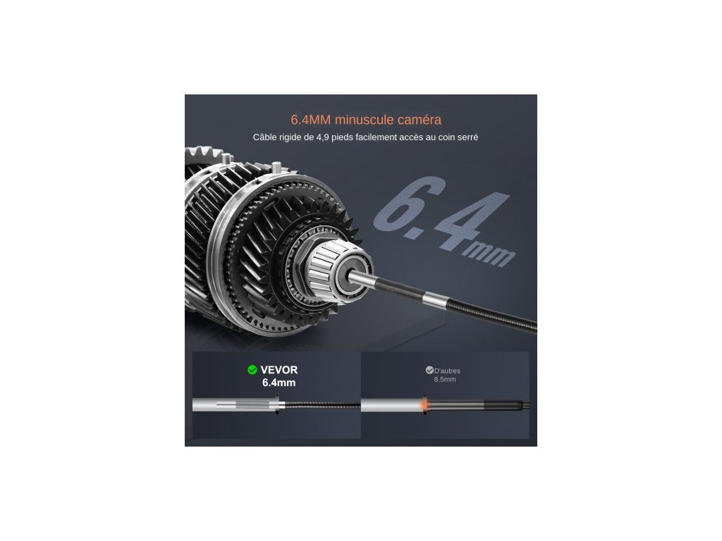 Rozlišení obrazovky: 854 x 480, Nastavitelná LED světla: 8, Digitální zoom: 1x, 2x, 4x, 6x, 8x, Délka kabelu: 4,9 ft / 1,5 m, Rozlišení objektivu: 1920 x 1080, Ohnisková vzdálenost: 1,2-3,2 palce / 3–8 cm, Úhel natočení: 0°–180° obousměrný, Průměr objektivu: 6,4 mm, Kapacita baterie: 4500 mAh, Otočení obrazu: 180° ve směru hodinových ručiček, Číslo modelu: ZX2-D2, Stupeň vodotěsnosti: IP 67, Typ obrazovky: 5" IPS, TF karta: 32 GB