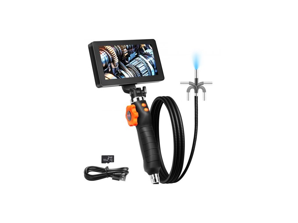 Kloubová boroskopická kamera se světlem, obousměrná kloubová endoskopická inspekční kamera s 6,4mm malým objektivem, 5" IPS 1080P HD obrazovkou, 8násobným zoomem, 8 LED světelnou kamerou pro auto a instalatérství (4,9 FT)Nastavitelná světla