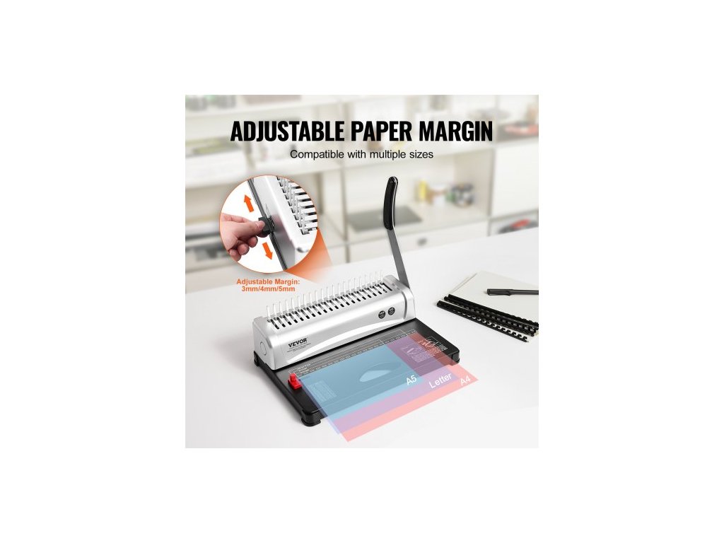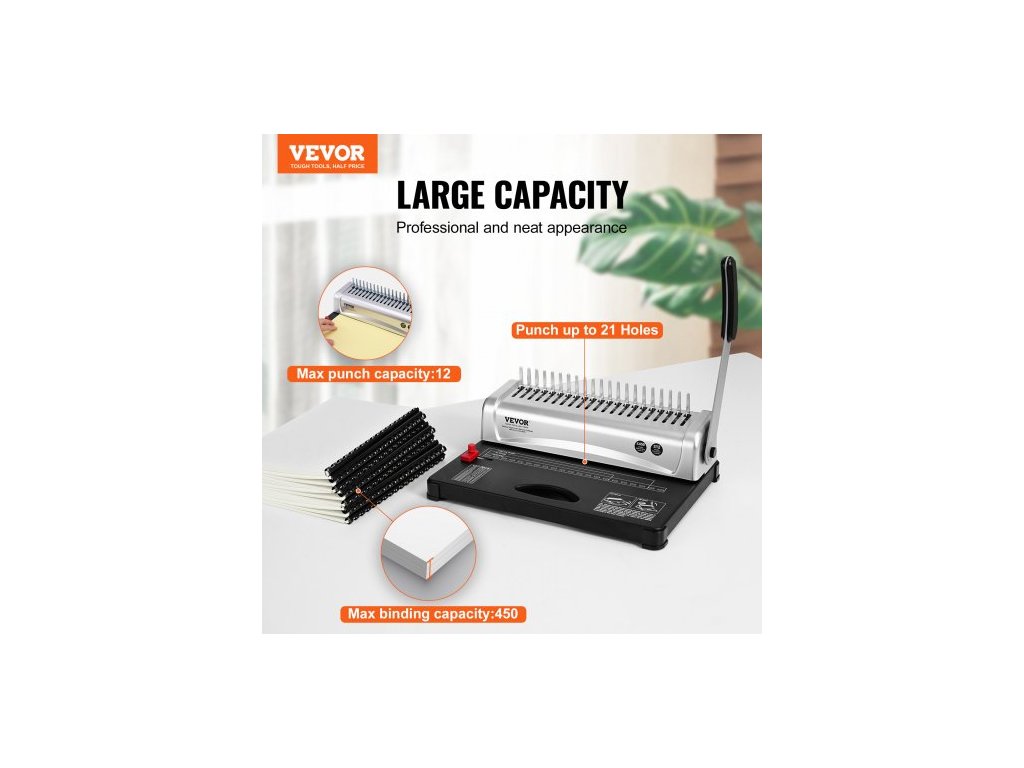 VAZBA , Hřebenová vazba, 21děrová vazba, 450 listů, Knižní pořadač se 100 hřebenovými hřbety o šířce 9,53 mm, pro formáty Letter, A4, A5Kompatibilní s různými formáty