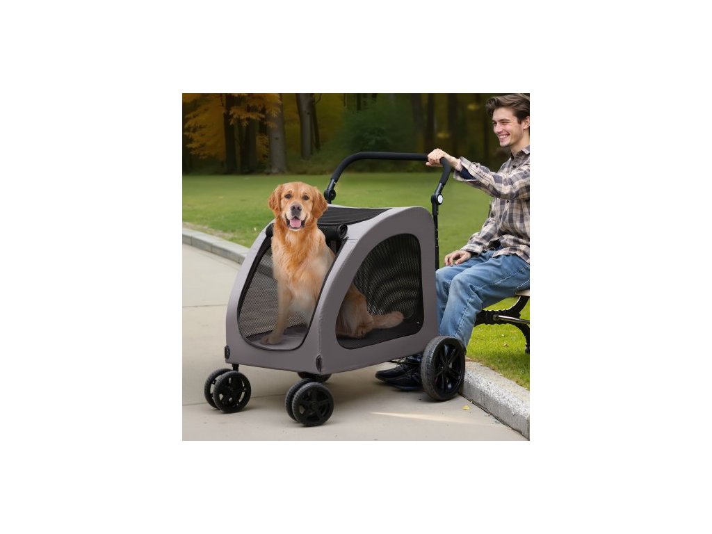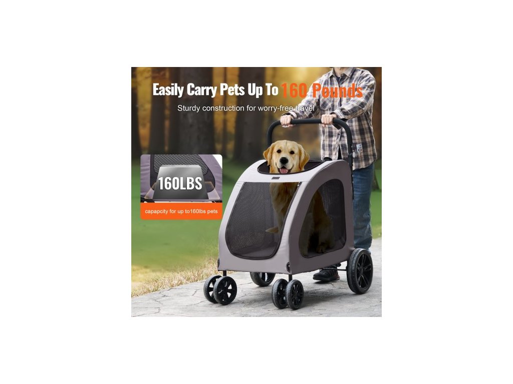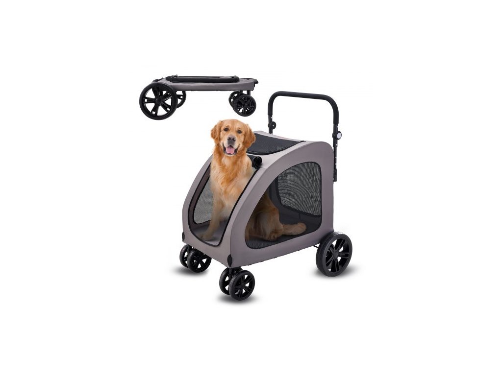 Kočárek pro domácí mazlíčky , kočárek pro psy na 4 kolech s brzdami, nosnost 71 kg, přenosný nosič pro štěňata s prodyšnými síťovanými okny a výškově nastavitelnou výškou, kočárek pro kočky a psy