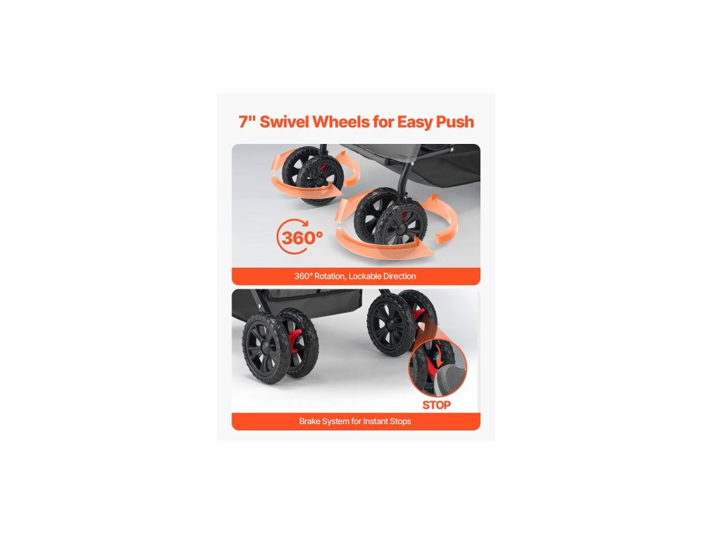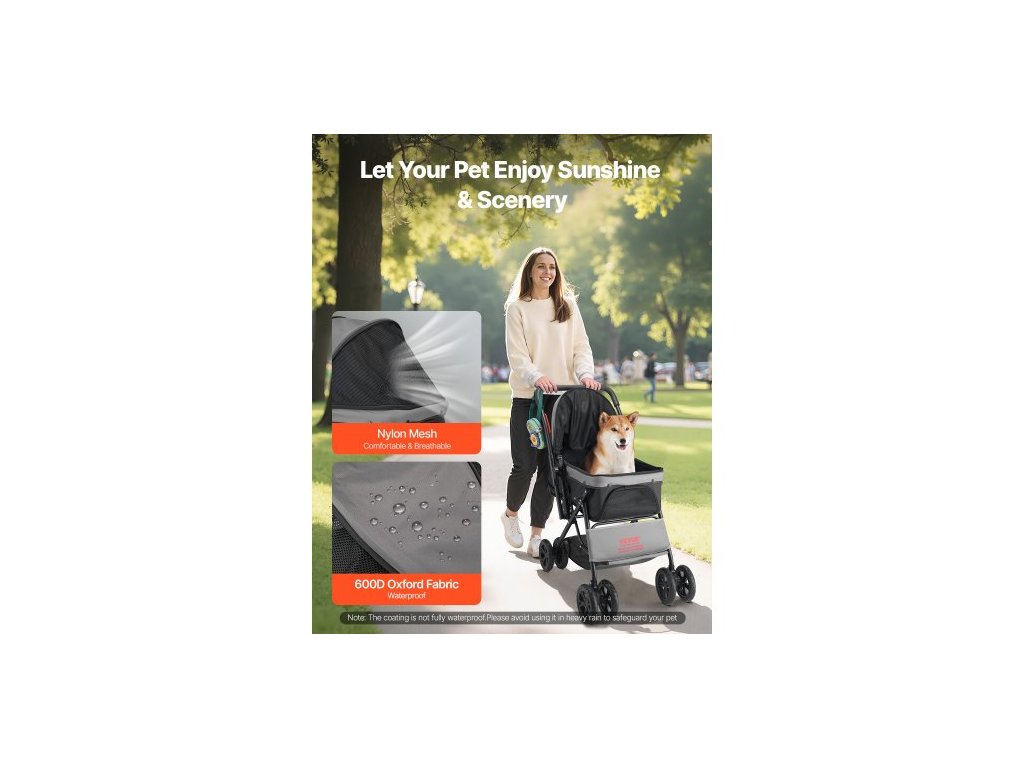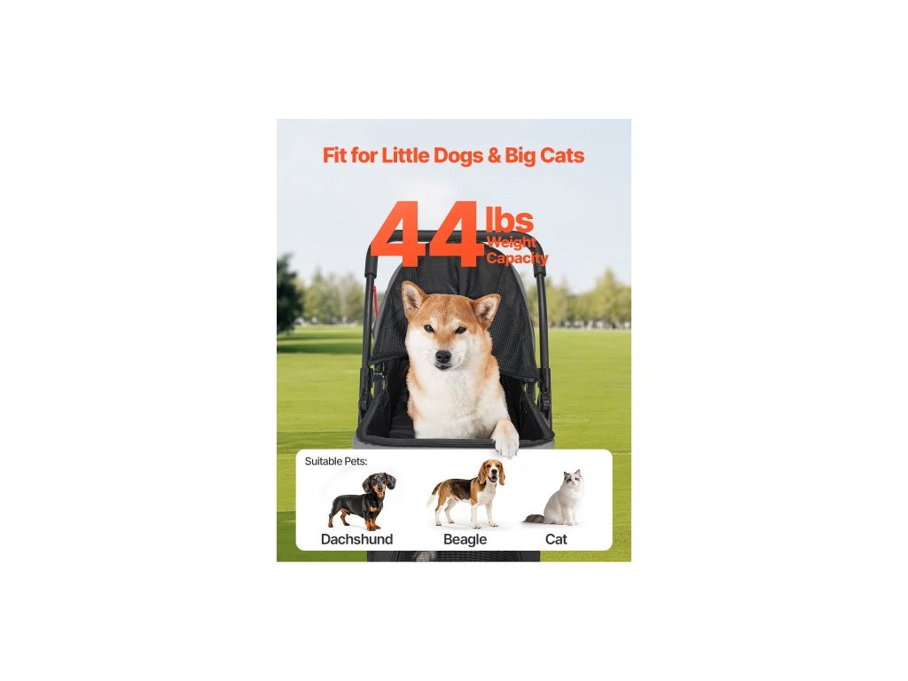 Kočárek pro domácí mazlíčky , nosnost 20 kg, skládací vozík pro psy, kočárek se 4 kolečky a kočkami se síťovanými okny a otočnou rukojetí, přenosný kočárek s brzdou, pro malá až střední zvířataKvalitní zip