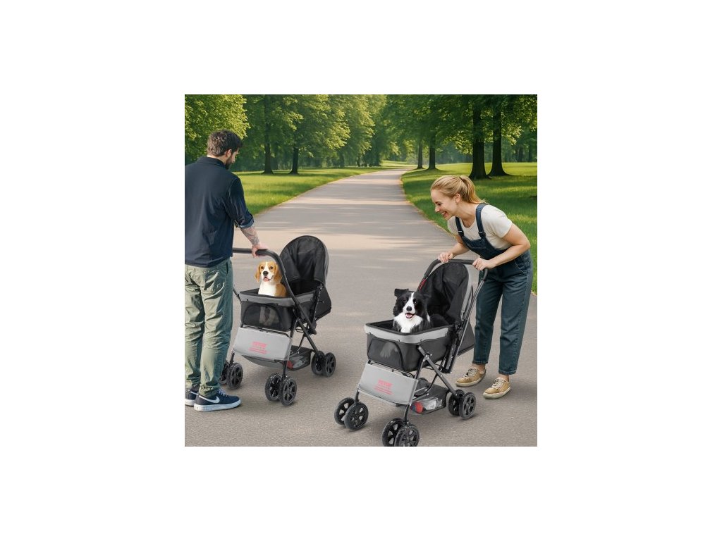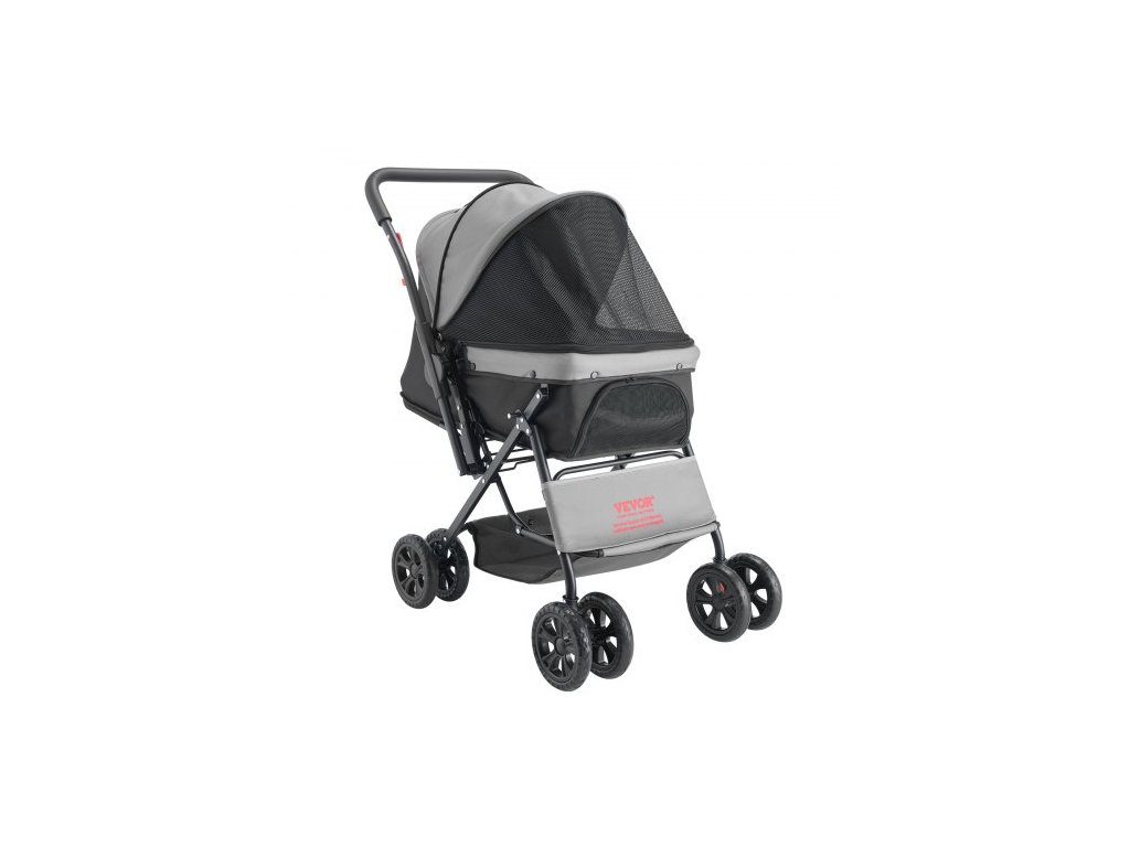 Kočárek pro domácí mazlíčky , nosnost 20 kg, skládací vozík pro psy, kočárek na 4 kolech a pro kočky se síťovanými okny a otočnou rukojetí, přenosný kočárek s brzdou, pro malá až střední zvířata