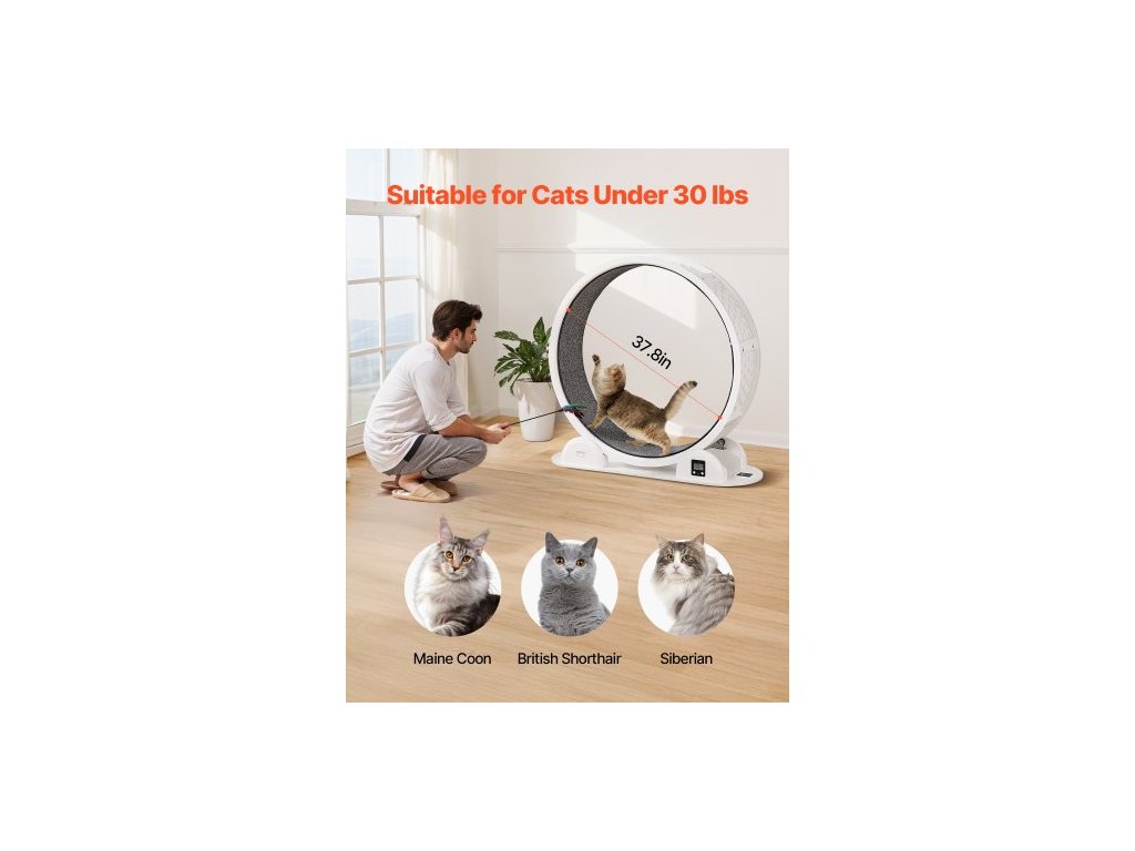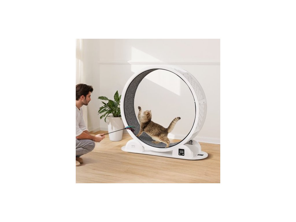 Kočičí cvičební kolečko s krokoměrem, 40,8 palce, běžecké kolečko pro kočky s brzdou a kobercovou dráhou, tichý běžecký pás pro kočky v interiéru do 30 liber, kočičí cvičební pás pro domácí mazlíčky, zdraví a fitness, bílá