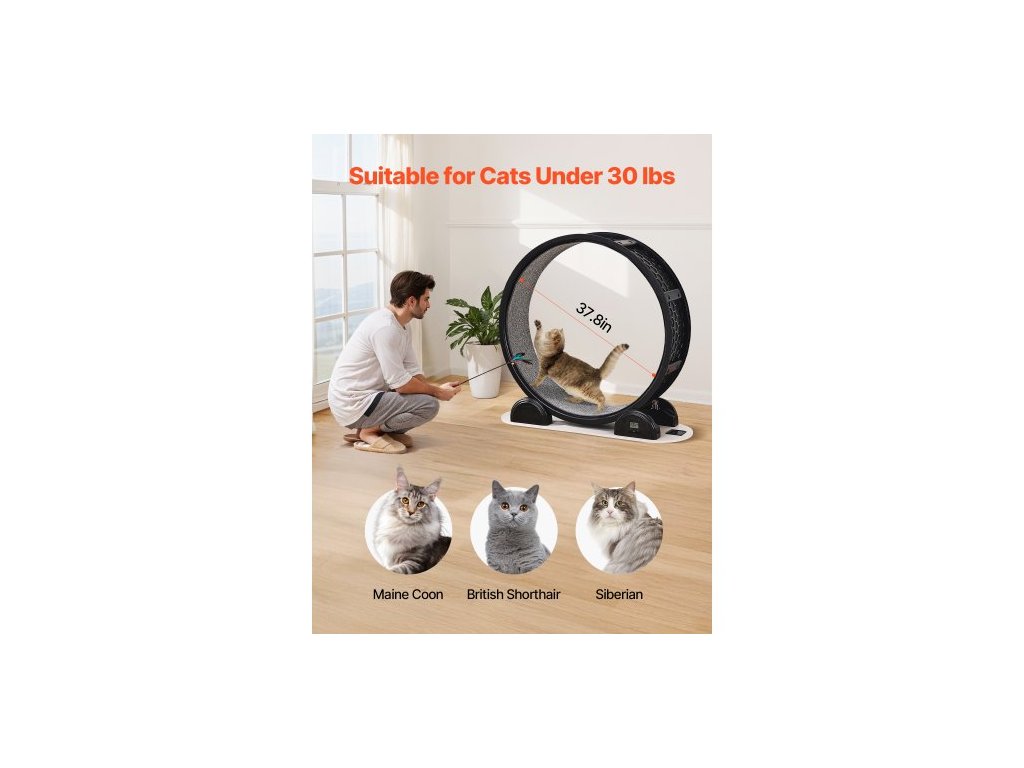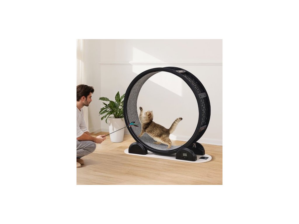 Kolečko pro cvičení koček s krokoměrem, 40,8 palce, Běžecké kolečko pro kočky s brzdou a kobercovou dráhou, Tichý běžecký pás pro kočky v interiéru do 30 liber, Kočičí cvičební pás pro domácí mazlíčky, Zdraví a fitness, ČernáBezpečné a efektivní cvičení