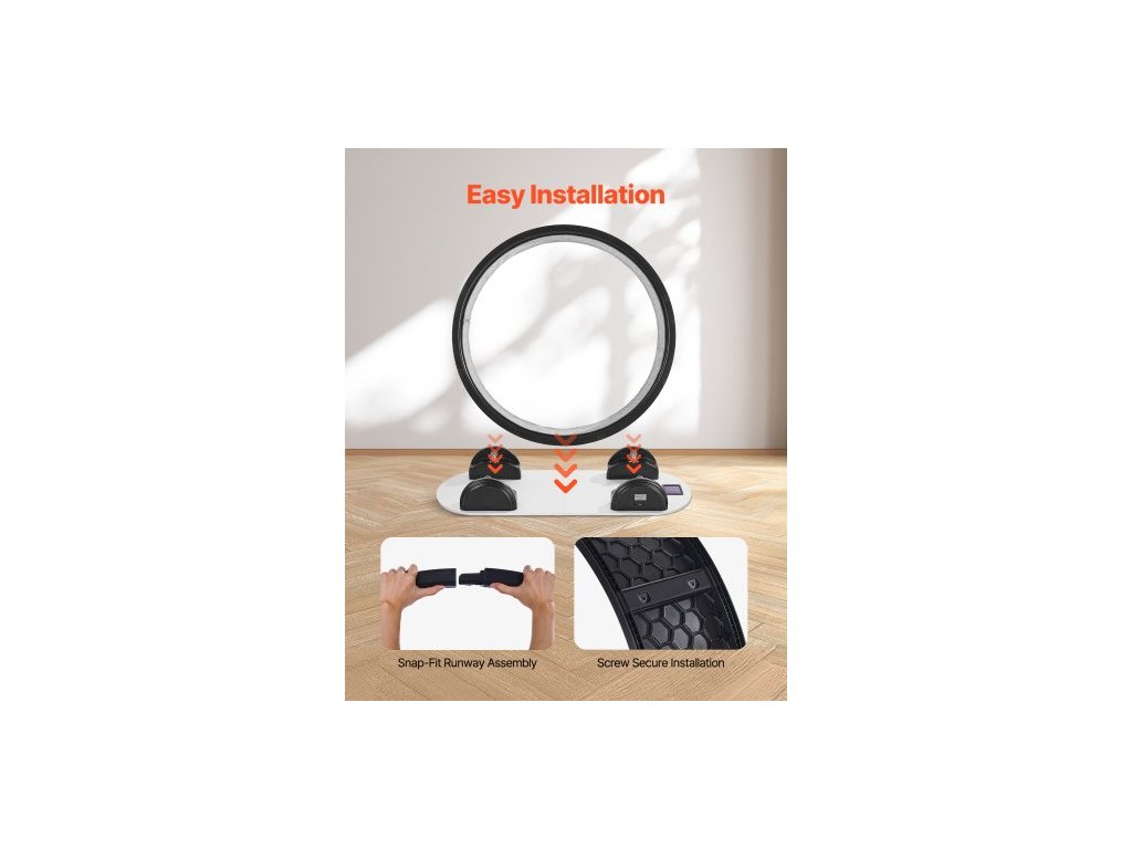Vnější průměr: 40,87 palce (1038 mm), Velikost základny: 15,55 x 45,12 palce (395 x 1146 mm), Vnitřní průměr: 37,8 palce (960 mm), Hmotnostní limit pro kočky: Až 30 liber, Číslo modelu položky: RK38, Rozměry: 45,28 x 15,55 x 42,91 palce (1150 x 395 x 1090 mm) mm),Materiál: ABS + MDF,Hmotnost: 11,6 kg,Šířka dráhy: 260 mm