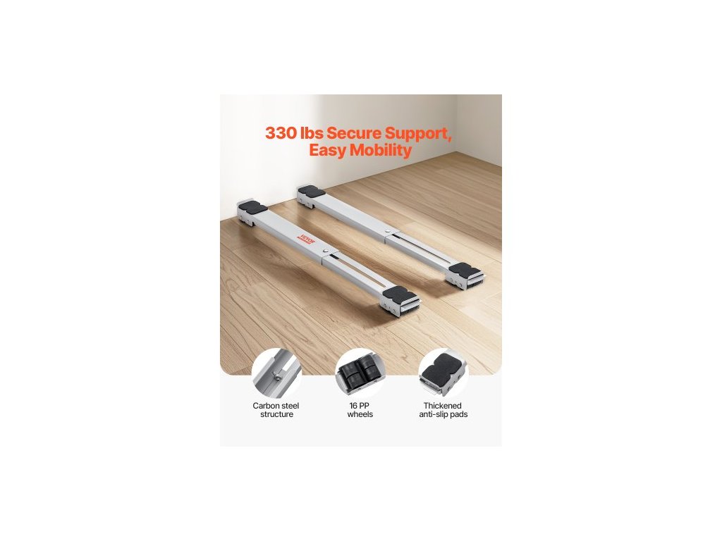 Kolečka na nábytek a spotřebiče s vysokou nosností, celková nosnost 299,4 kg, výsuvná kolečka na spotřebiče, mobilní podstavec pro pračku, stojan na ledničku, stěhovací vozíky pro ledničky, sušičky, myčky nádobí, bílá
