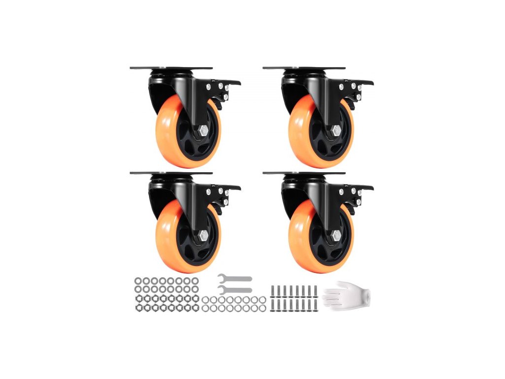 Kolečka , otočná kolečka o průměru 10,1 cm, sada 4 kusů, s bezpečnostním zámkem A/B, nehlučná PVC kolečka, vysoká nosnost 158,8 kg na kolečko, kolečka nezanechávají šmouhy pro pracovní stůl s vozíkem