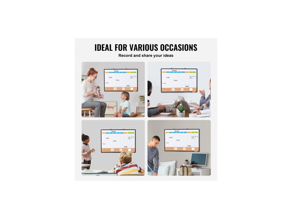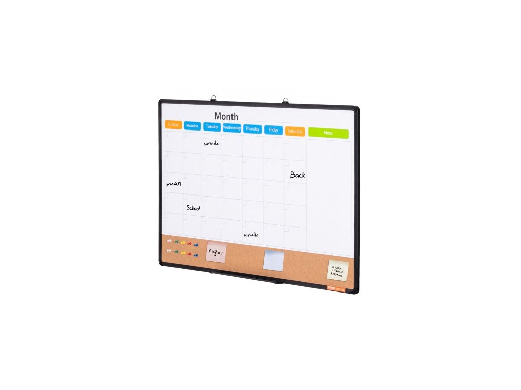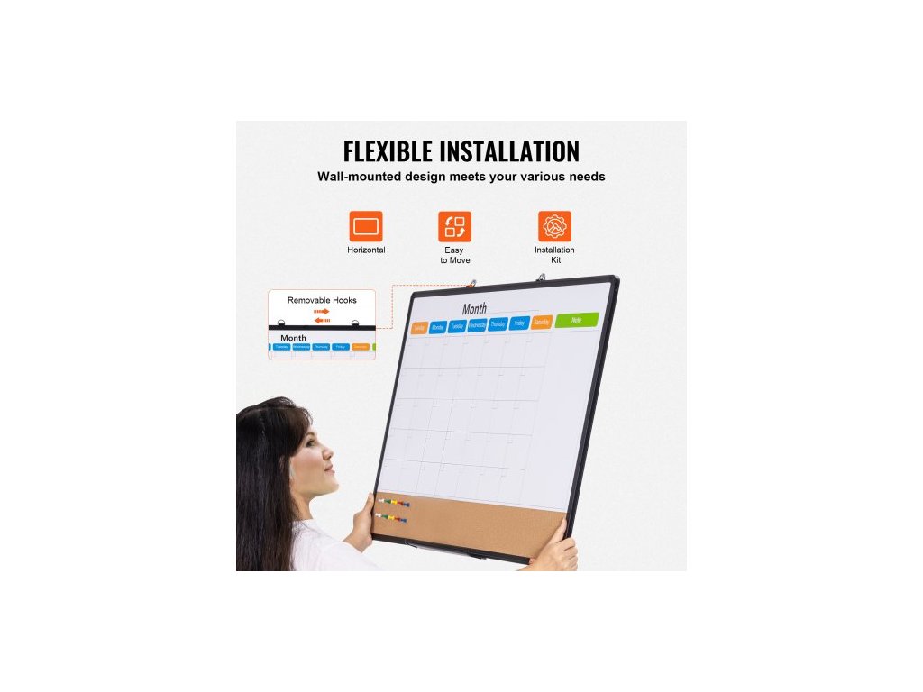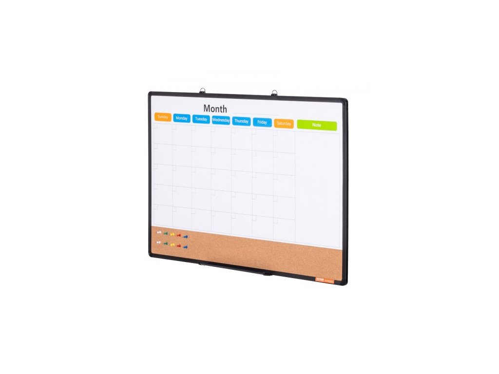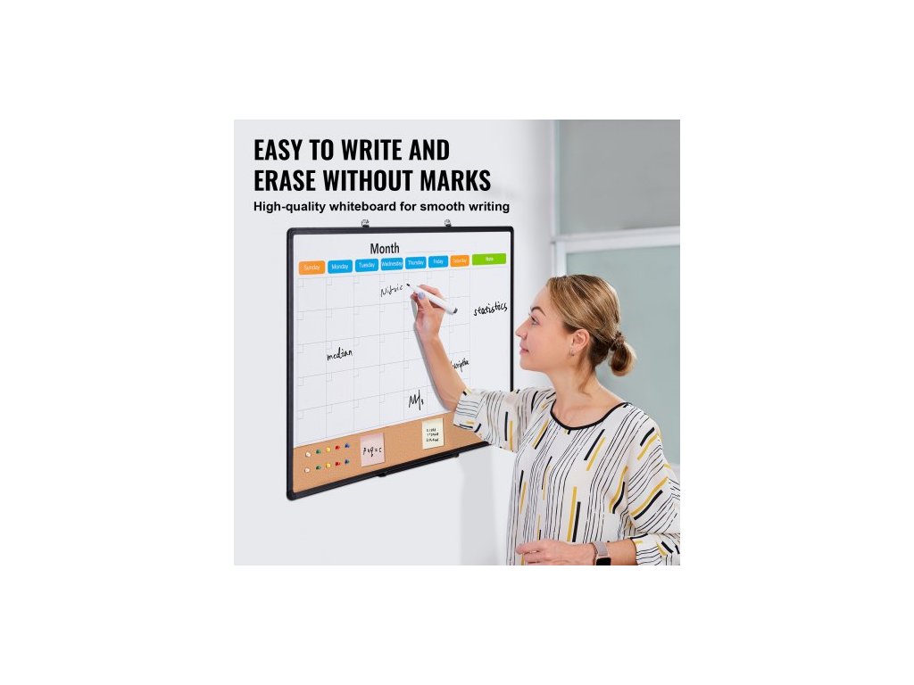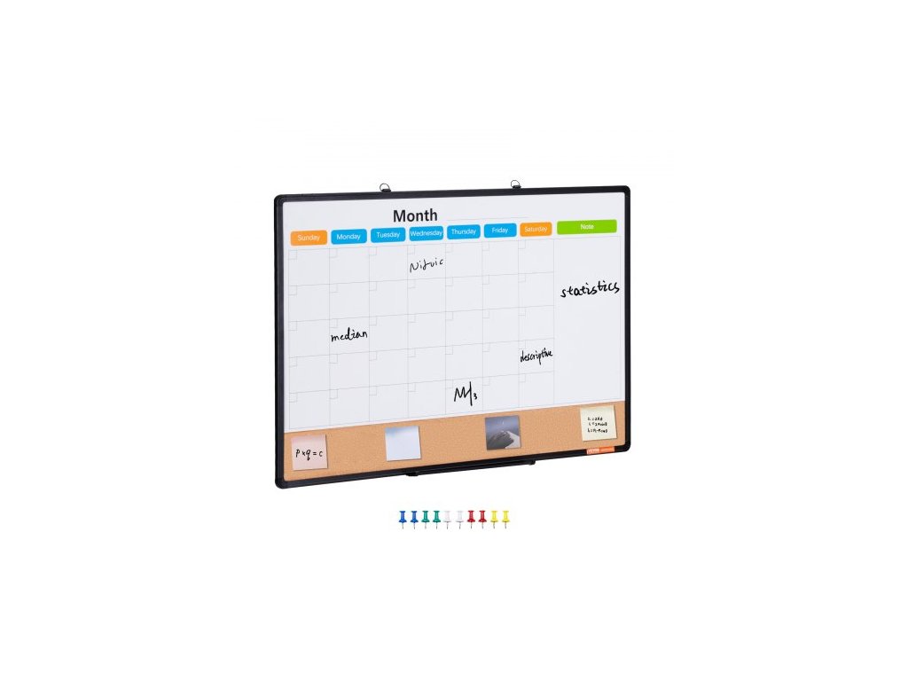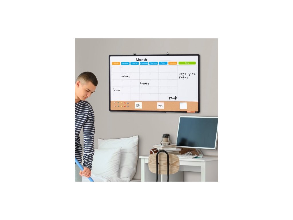 Kombinace bílé a korkové tabule s měsíčním kalendářem 36"x 24" s hliníkovým rámem – magnetická nástěnka 2 v 1 s možností suchého mazání k upevnění na zeď – ideální do školy, domů i kanceláře