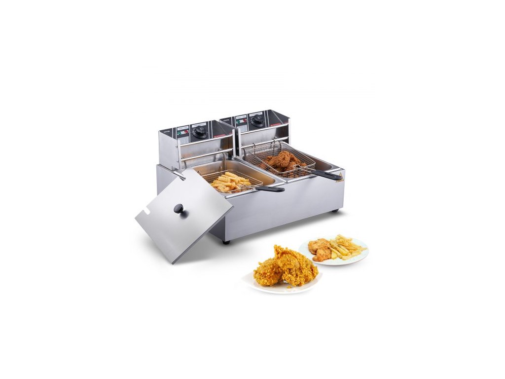Komerční elektrická fritéza, stolní fritéza, dvě odnímatelné nádržeVylepšená kapacita
