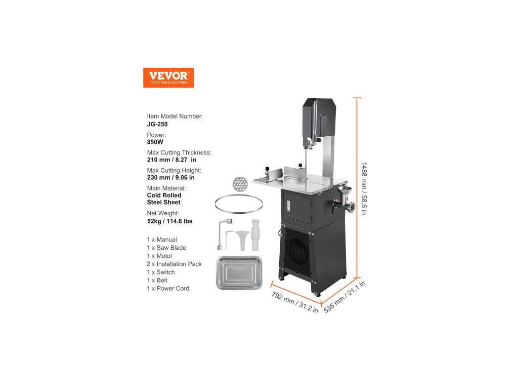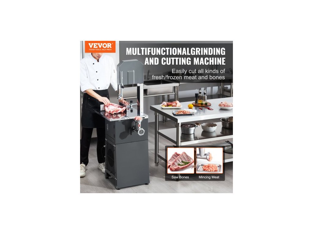 Komerční elektrická pásová pila na maso, vertikální pila na kosti z nerezové oceli 850 W, pracovní stůl 19,1"x15", tloušťka řezu 7,09 palce, řezačka mraženého masa s čepelí na vepřová a hovězí žebra