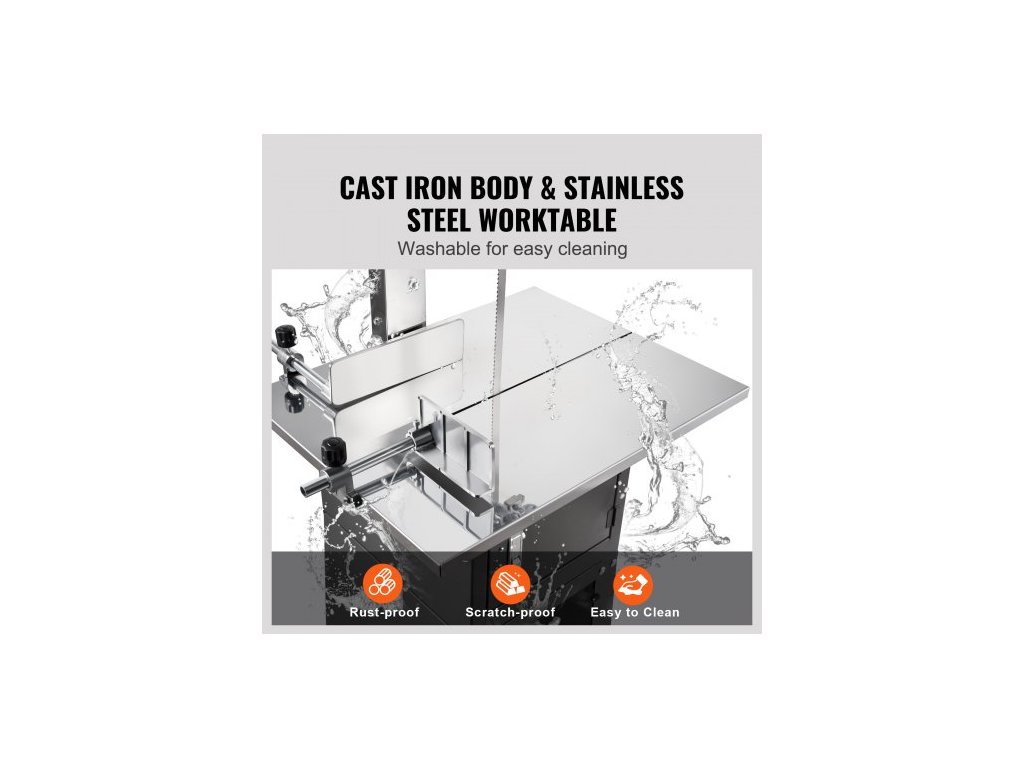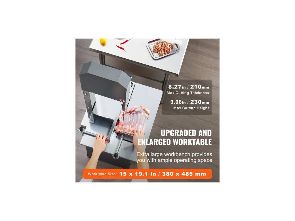Komerční elektrická pásová pila na maso , vertikální pila na kosti z nerezové oceli 850 W, pracovní stůl 19,1"x15", tloušťka řezu 7,09 palce, řezačka mraženého masa s čepelí na vepřová a hovězí žebraEfektivní a spolehlivá