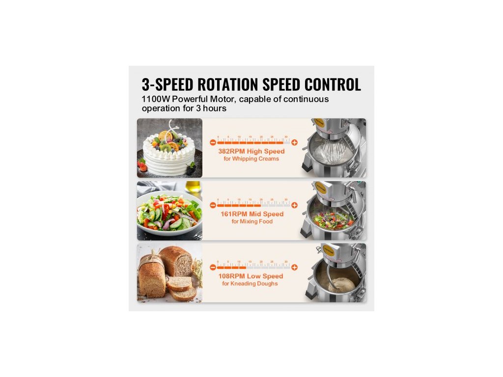 Komerční kuchyňský mixér, 18,7l komerční stolní mixér se 3 nastavitelnými rychlostmi, hnětač těsta 1100 W s nerezovou mísou a 3 míchacími nástavci, ideální pro restaurace, pekárny, cukrárny, kavárnyKomerční mixér