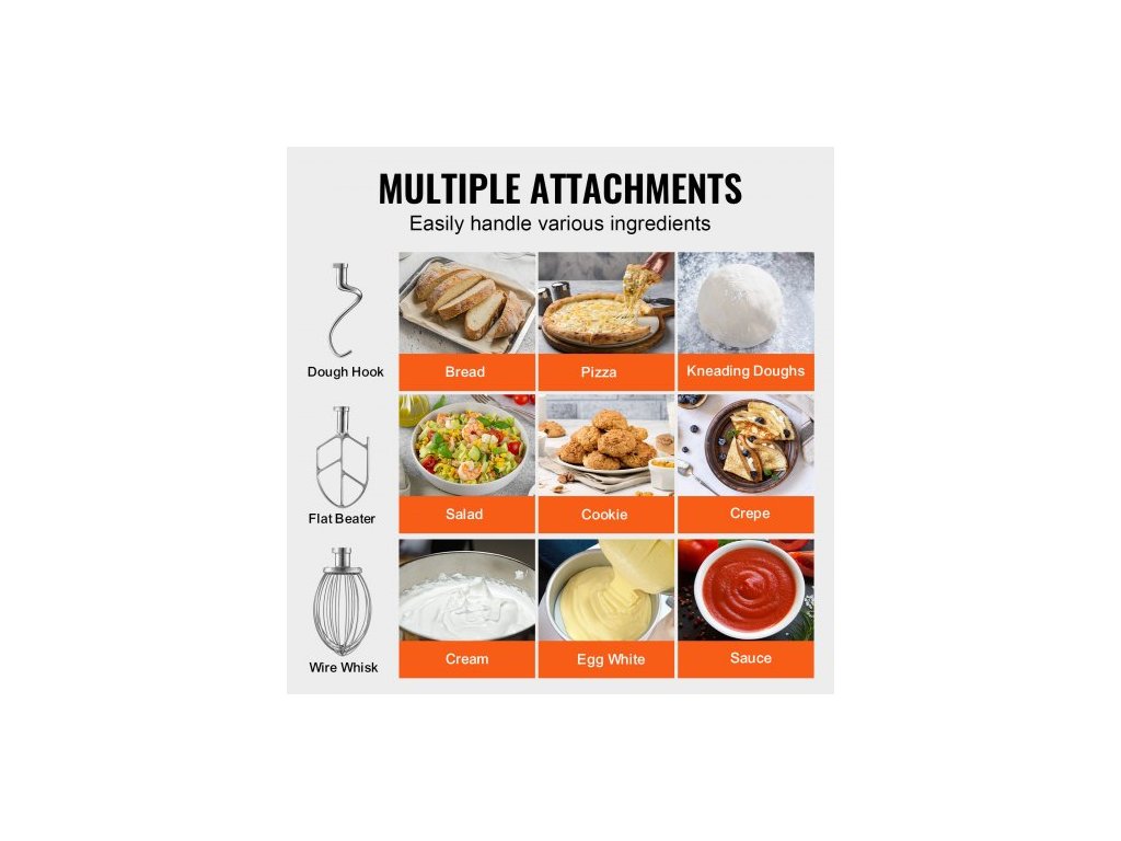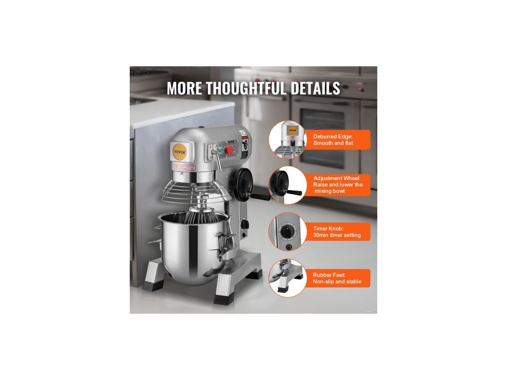 Komerční kuchyňský robot, 18,7l profesionální stolní robot se 3 nastavitelnými rychlostmi, hnětač těsta 1100 W s nerezovou mísou a 3 míchacími nástavci, ideální pro restaurace, pekárny, cukrárny, kavárny