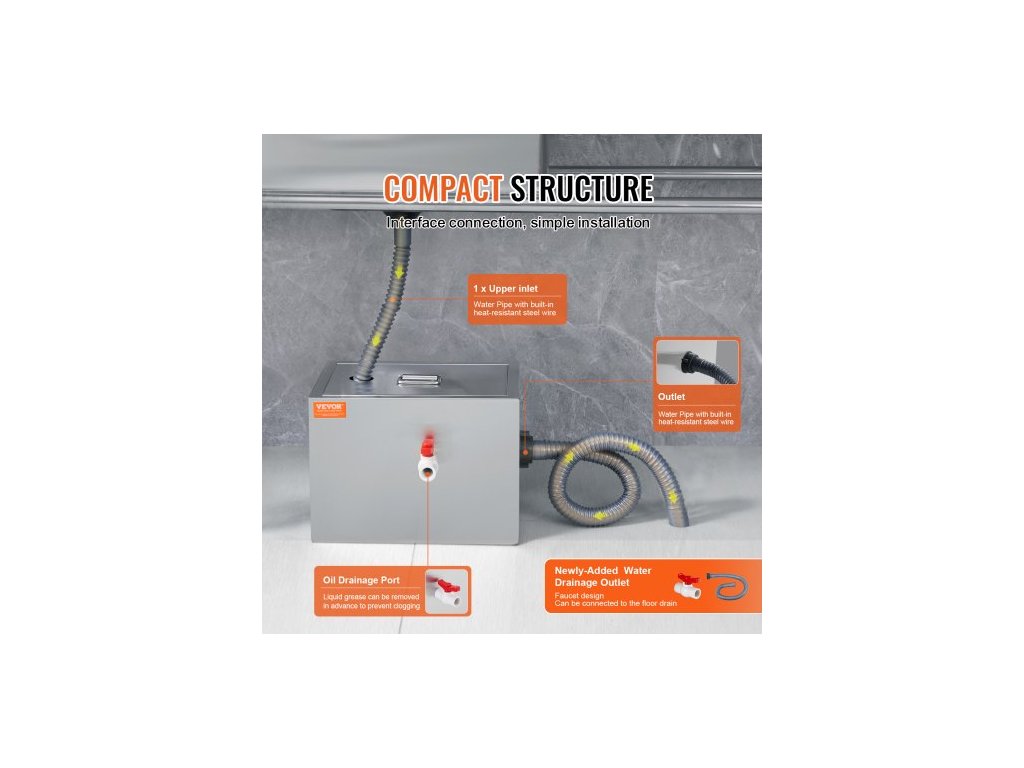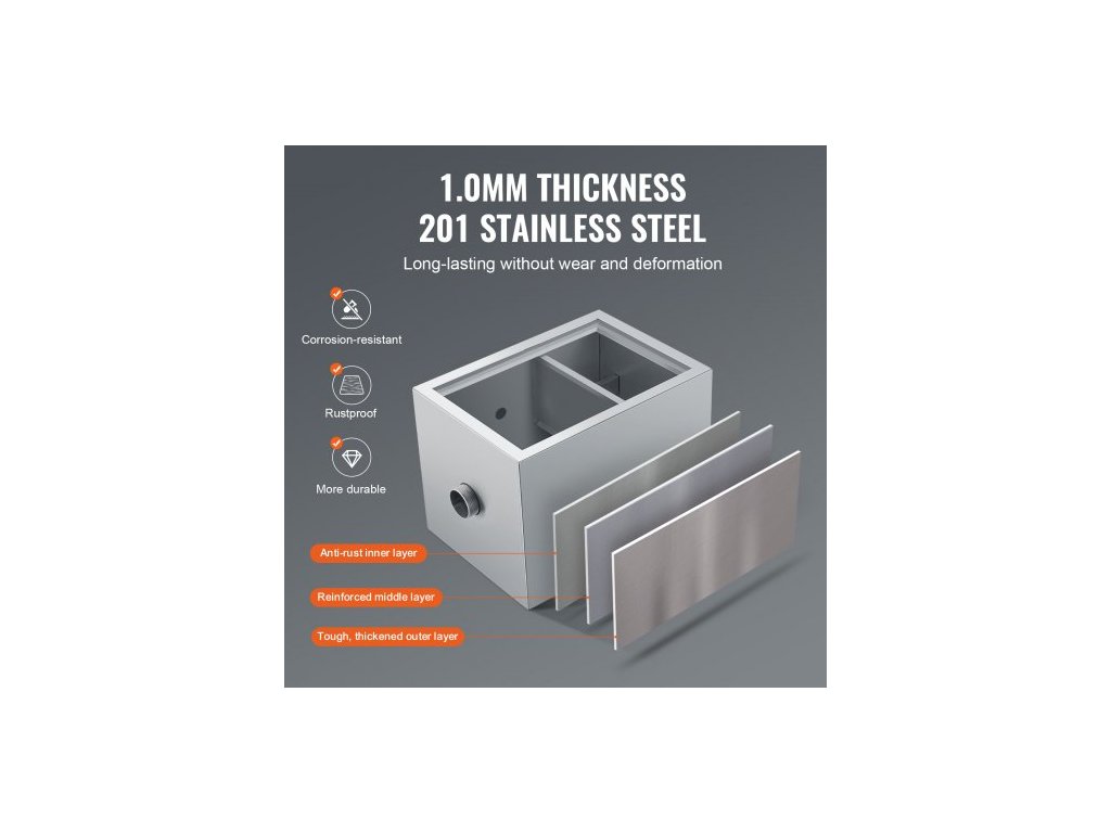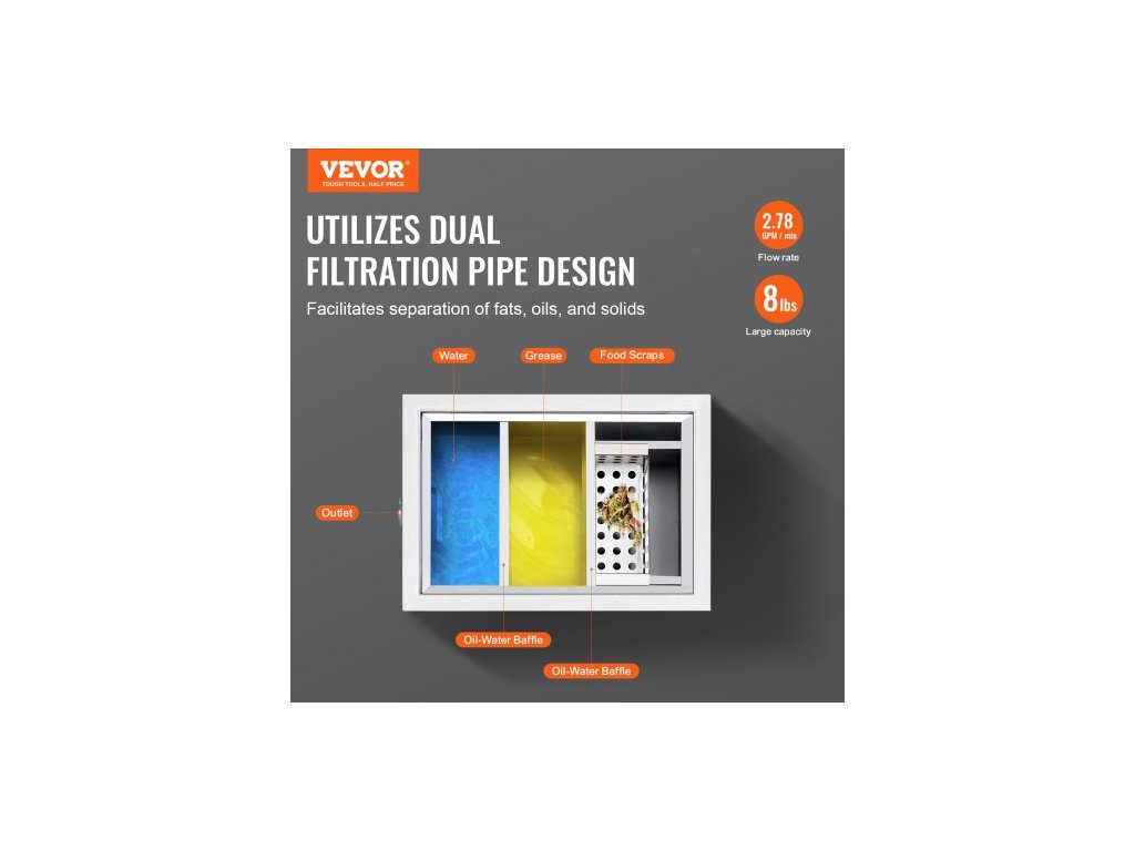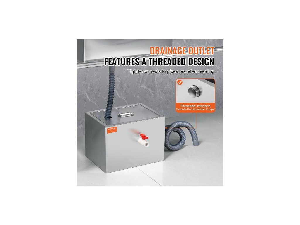 Komerční lapač tuků , lapač tuků 3,6 kg, horní vstup, lapač tuků z nerezové oceli pod dřez, odlučovač odpadní vody 2,8 GPM, pro restauraci, jídelnu, domácí kuchyňFyzikálně efektivní odlučování oleje