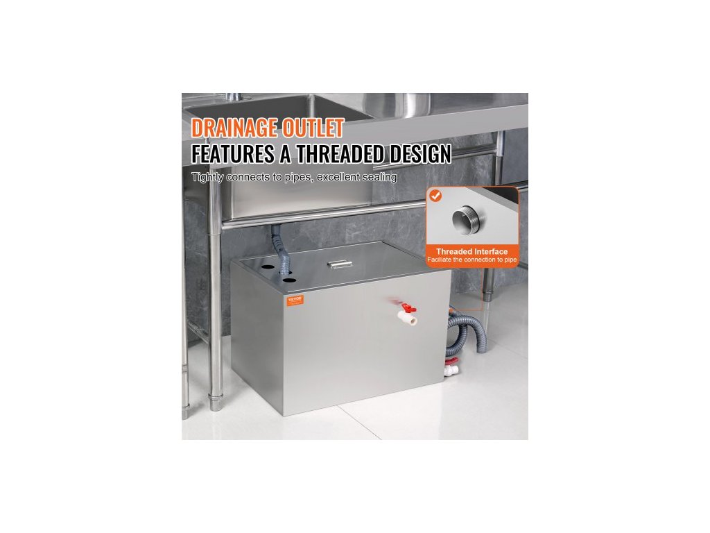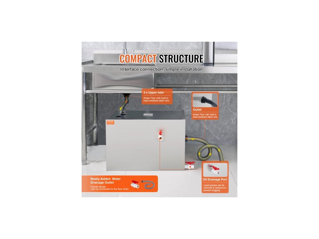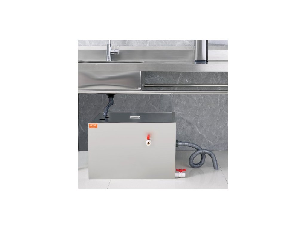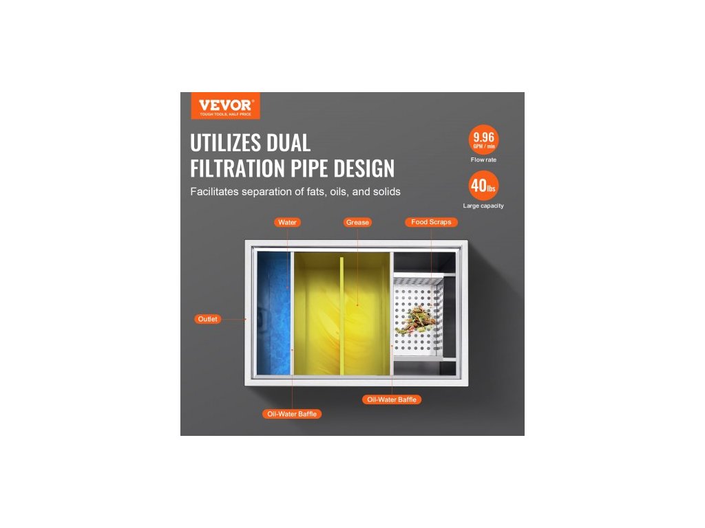 Komerční lapač tuků , lapač tuků 40 liber, horní vstupní lapač, lapač tuků z nerezové oceli pod dřez, odlučovač odpadní vody 10 galonů za minutu, pro restauraci, jídelnu, domácí kuchyňFyzikálně efektivní odlučování oleje