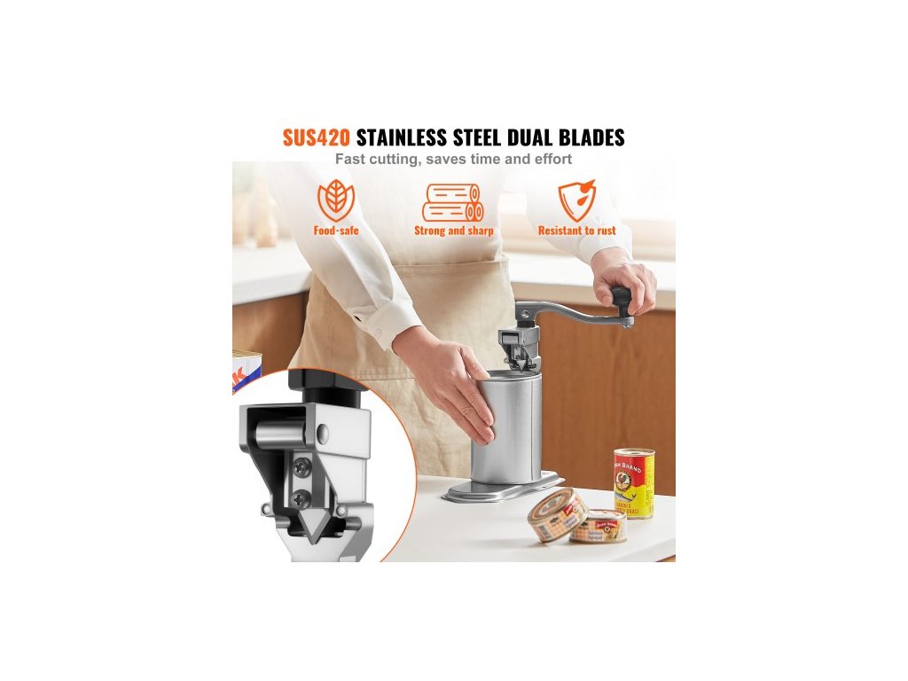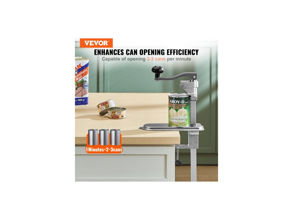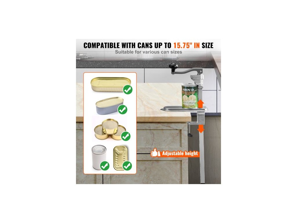 Komerční otvírák na konzervy, robustní ruční stolní otvírák na konzervy do výšky 400 mm, výškově nastavitelné otvíráky na konzervy upevněné šrouby a stolní svorkou, pro restaurace, hotely a obchody s potravinami