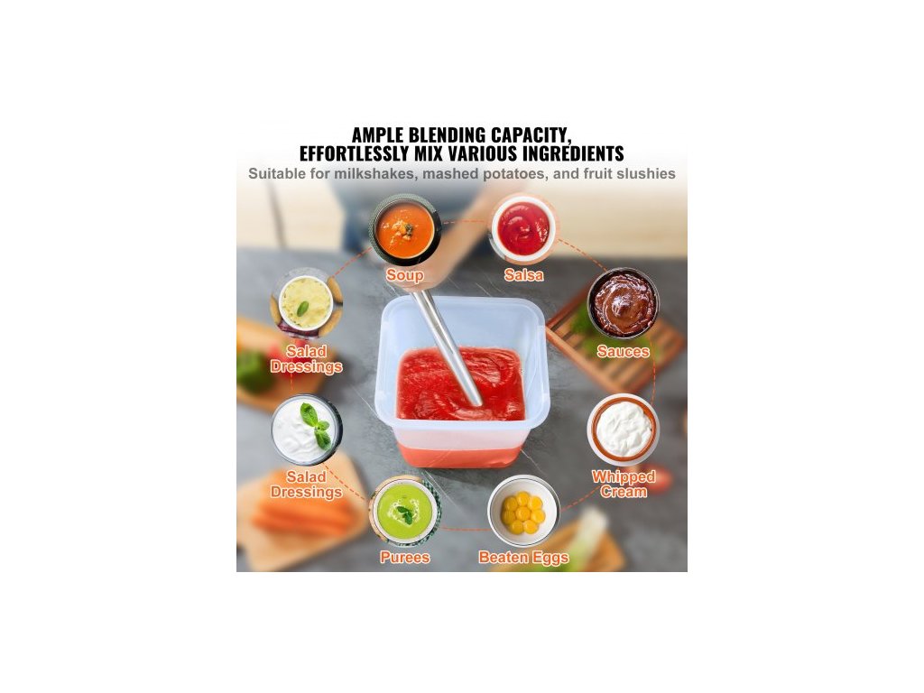 Komerční ponorný mixér, 500wattový ruční mixér s vysokým výkonem, tyčový mixér s nastavitelnou rychlostí a čepelí z nerezové oceli 304, víceúčelový přenosný mixér na polévky, smoothie, pyré a dětskou výživu