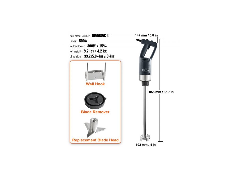 Komerční ponorný mixér, 500wattový ruční mixér s vysokým výkonem, tyčový mixér s nastavitelnou rychlostí a nožem z nerezové oceli 304, víceúčelový přenosný mixér na polévky, smoothie, pyré a dětskou výživuVysoce kvalitní motor