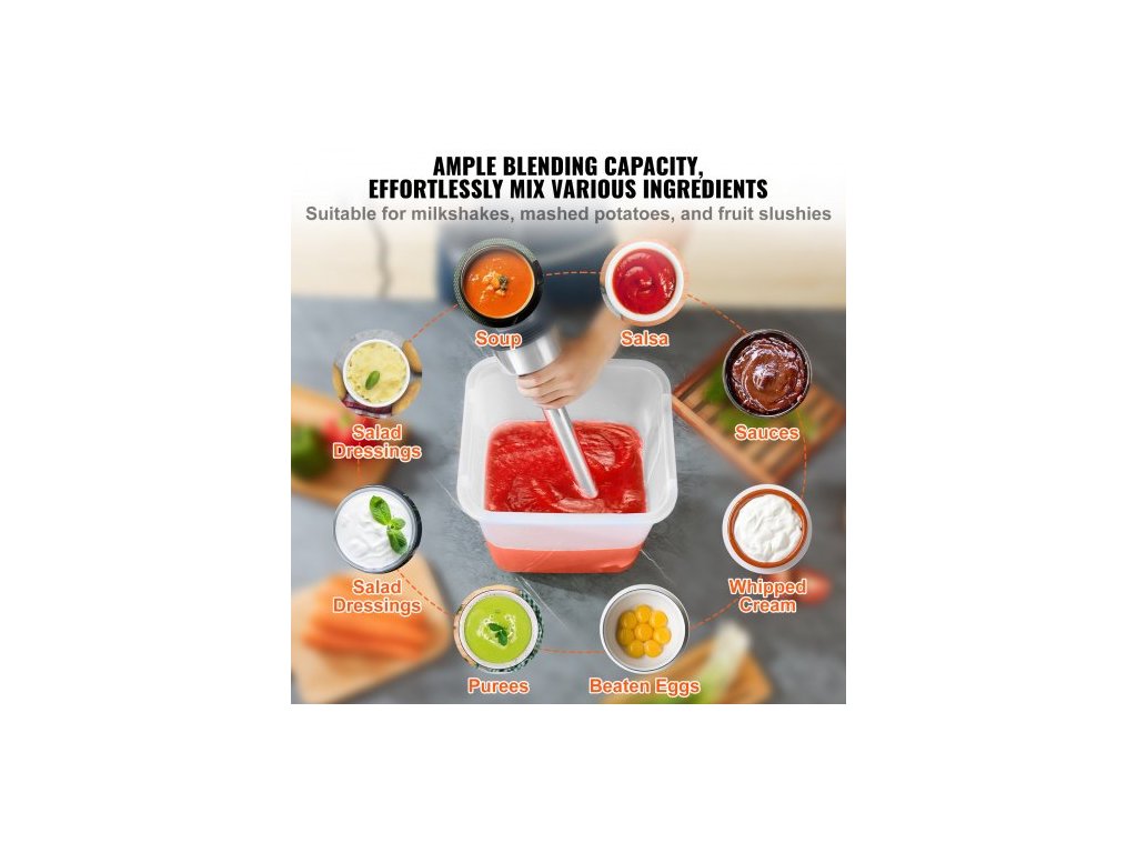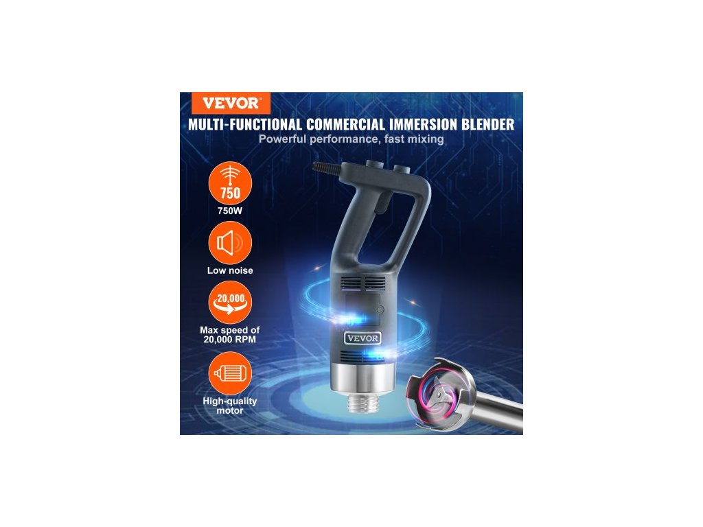 Komerční ponorný mixér, 750wattový ruční mixér s vysokým výkonem, tyčový kuchyňský mixér s nastavitelnou rychlostí a čepelí z nerezové oceli 304, víceúčelový přenosný mixér na polévky, smoothie, pyré a dětskou výživuVysoce kvalitní motor