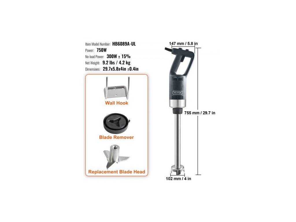 Komerční ponorný mixér, 750wattový ruční mixér s vysokým výkonem, tyčový mixér s nastavitelnou rychlostí a čepelí z nerezové oceli 304, víceúčelový přenosný mixér na polévky, smoothie, pyré a dětskou výživu