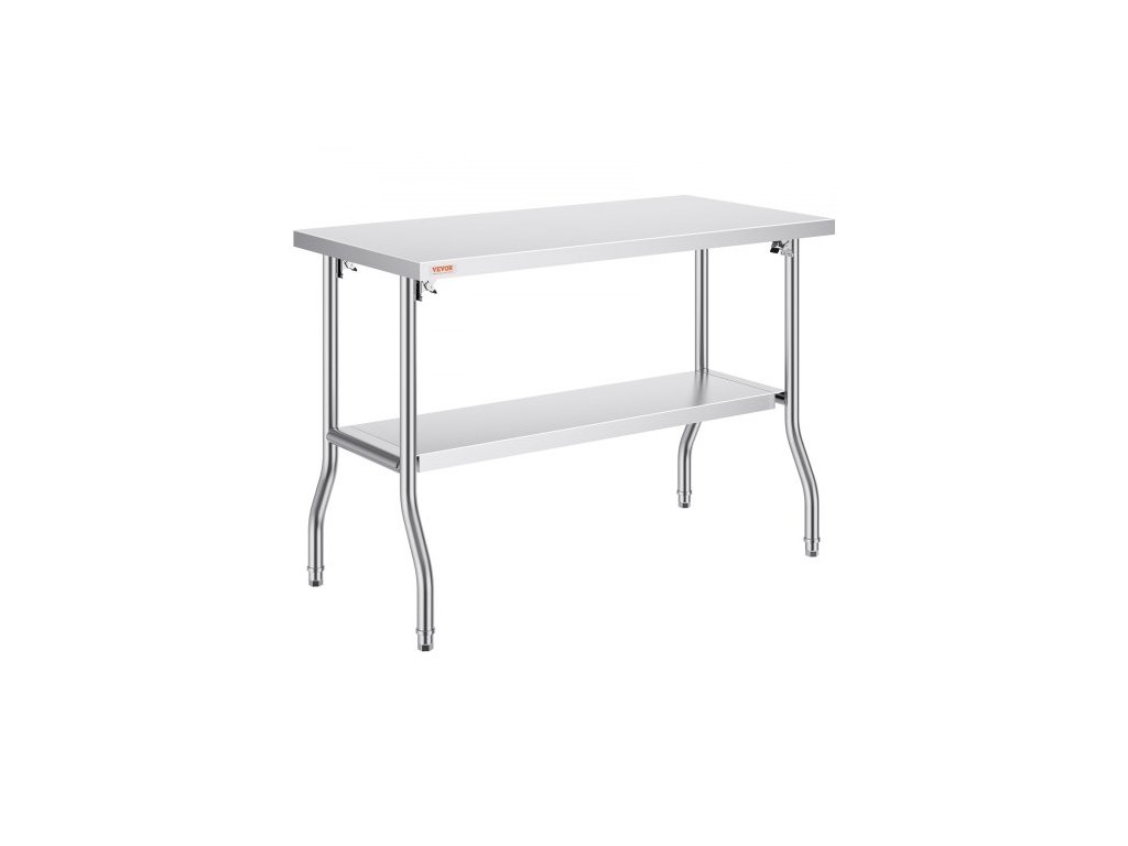 Komerční pracovní stůl, skládací pracovní stůl 121,9 x 61 cm, odolný skládací stůl z nerezové oceli s nosností 350,2 kg, kuchyňský pracovní stůl, stříbrný kuchyňský ostrůvek z nerezové oceliStylový pracovní stůl