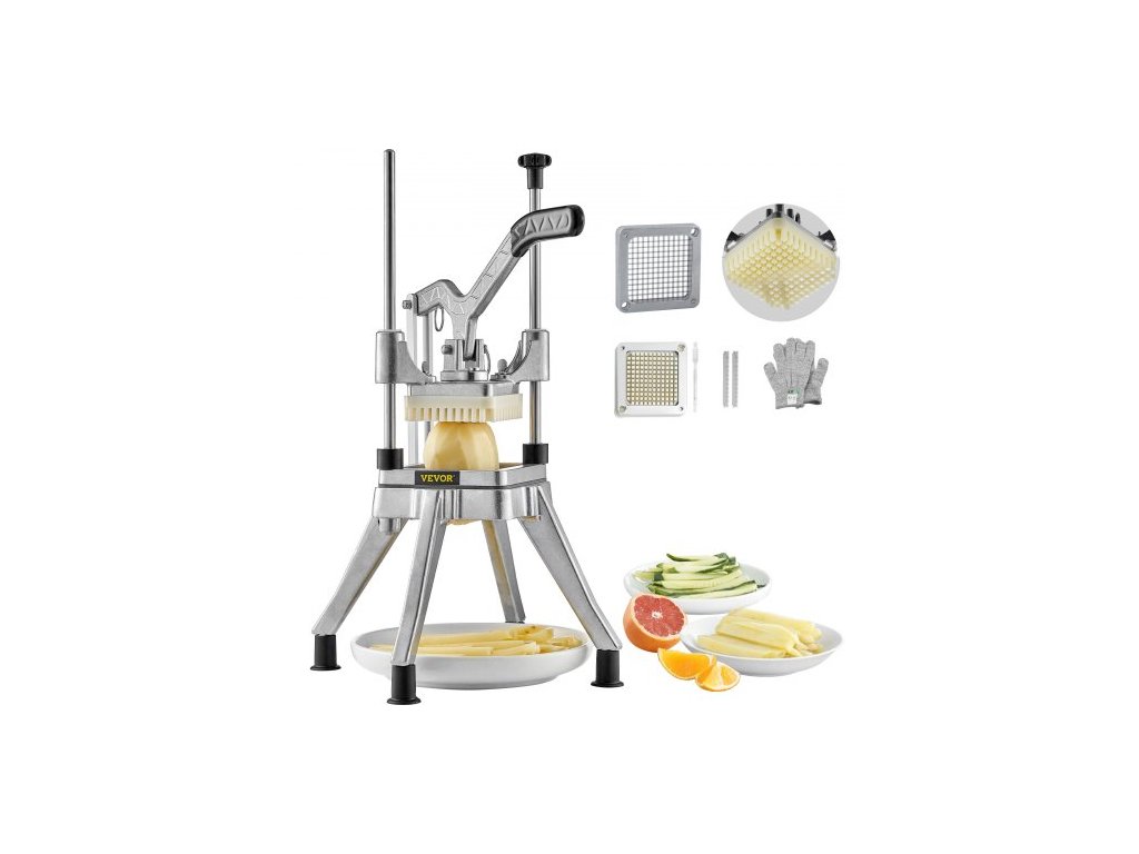 Komerční sekáček na zeleninu a ovoce, čepel 0,64 cm, odolný, profesionální kráječ na hranolky Kattex, kráječ cibule a nerezová ocel na rajčata, papriky a brambory, houbyOdolná konstrukce