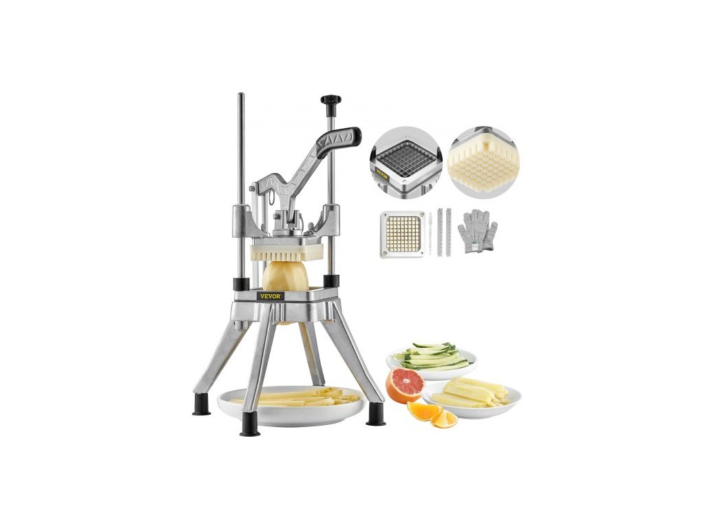 Komerční sekáček na zeleninu a ovoce, čepel 0,95 cm, odolný, profesionální kráječ na hranolky Kattex, kráječ cibule a nerezové oceli na rajčata, papriky, brambory a houby, stříbrnýOdolná konstrukce