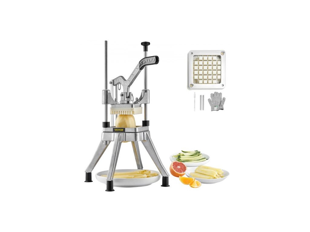 Komerční sekáček na zeleninu a ovoce, čepel 1,3 cm, odolný profesionální kráječ na hranolky Kattex, kráječ cibule a nerezová ocel na rajčata, papriky, brambory a houby, stříbrnýOdolná konstrukce