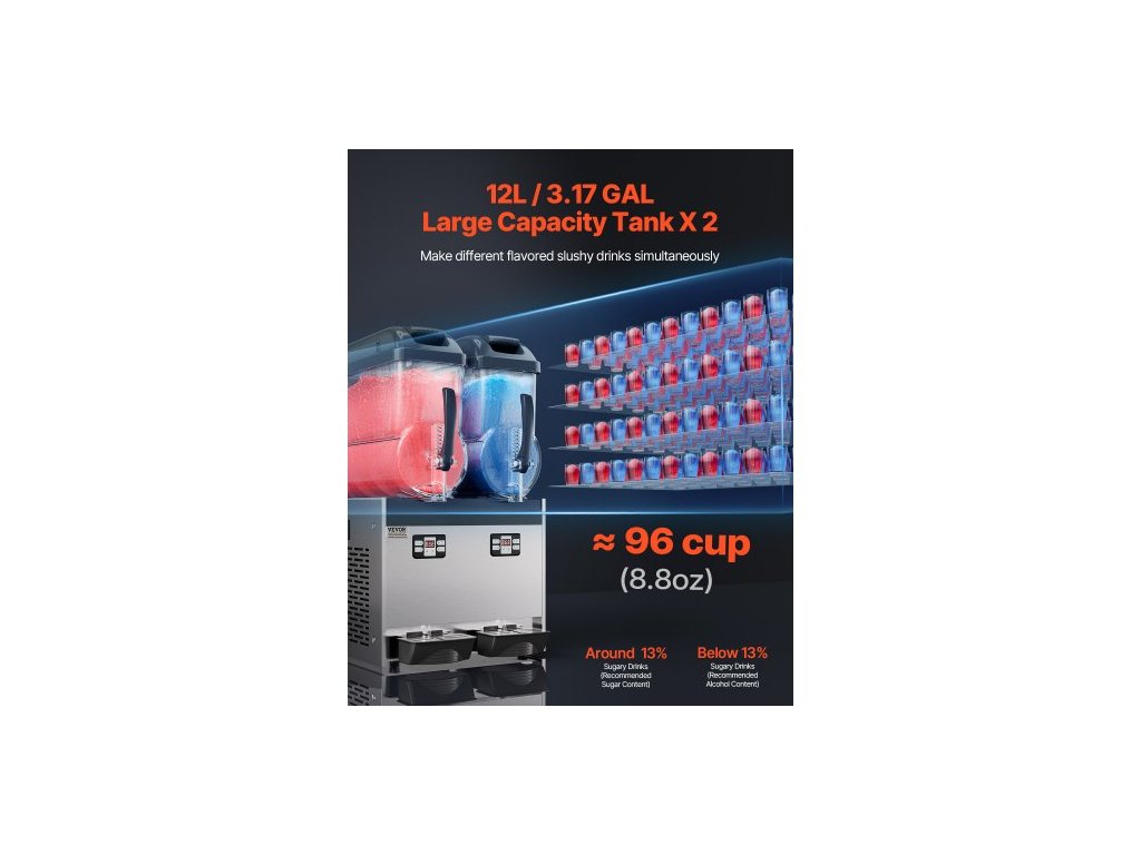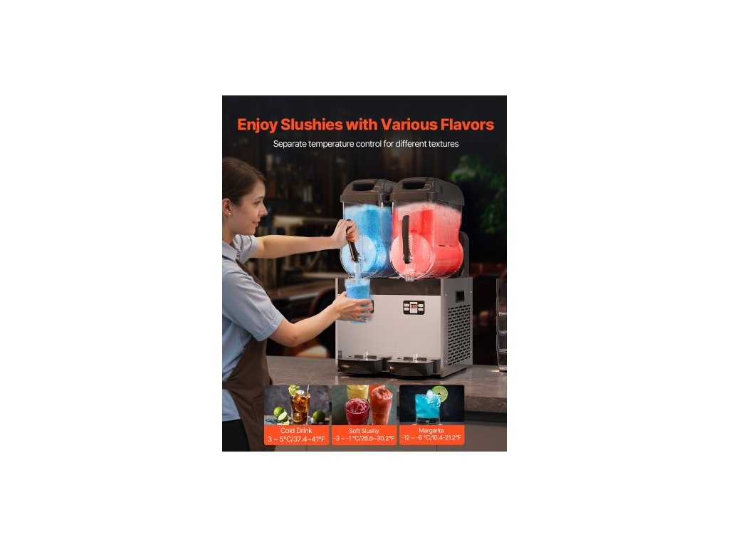 Komerční stroj na ledovou kaši, stroj na mražené nápoje s dvojitou nádrží 12Lx2, nerezový výrobník smoothie Margarita na 96 šálků, výrobník ledové kaše pro domácí párty, restaurace, kavárny, baryKomerční stroj na ledovou kaši