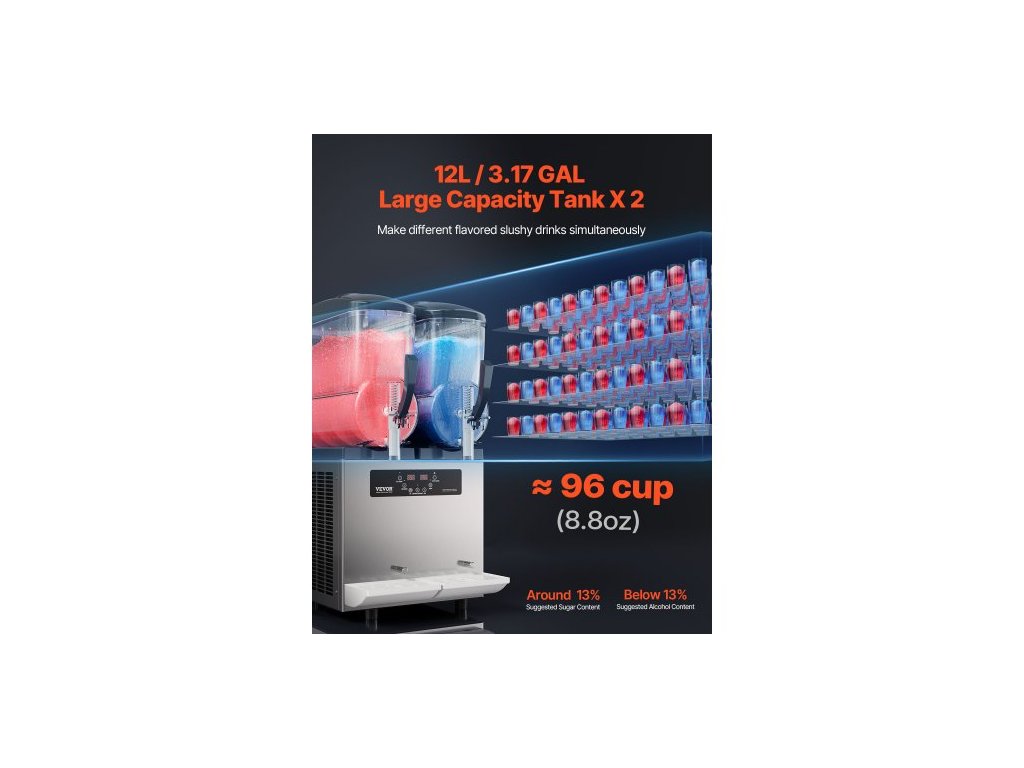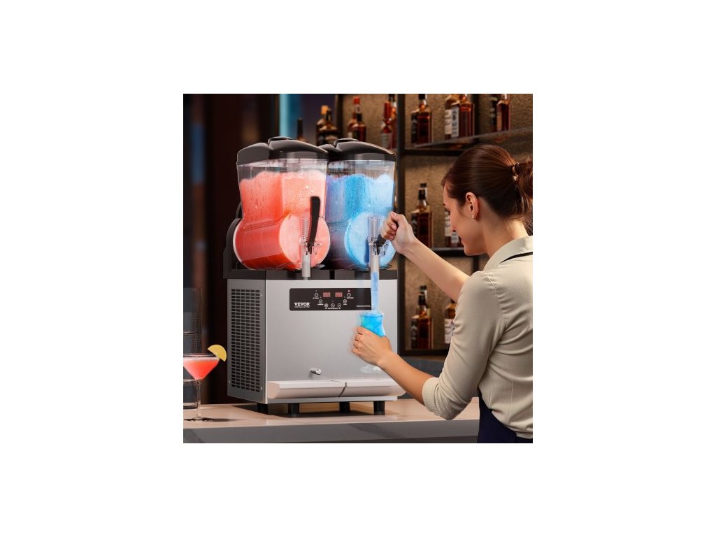 Komerční stroj na ledovou břečku, stroj na mražené nápoje s dvojitou nádrží 12Lx2, nerezový výrobník smoothie Margarita na 96 šálků, výrobník ledové břečky pro domácí párty, restaurace, kavárny, baryKomerční stroj na ledovou břečku
