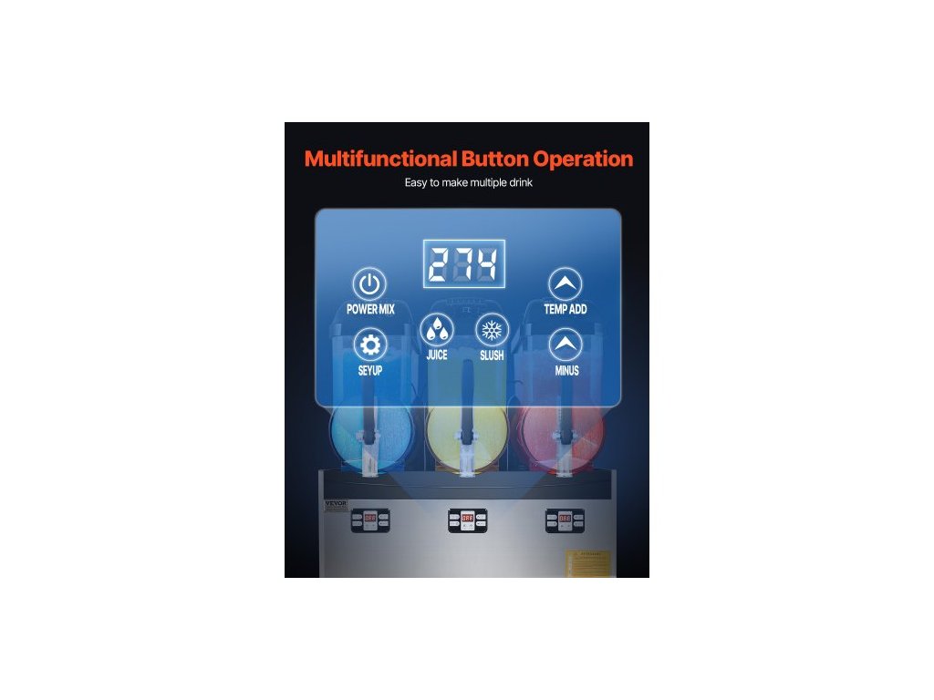 Komerční stroj na ledovou kaši, stroj na mražené nápoje s trojitou nádrží 12Lx3, nerezový výrobník smoothie Margarita na 144 šálků, výrobník ledové kaše pro domácí párty, restaurace, kavárny, baryKomerční stroj na ledovou kaši