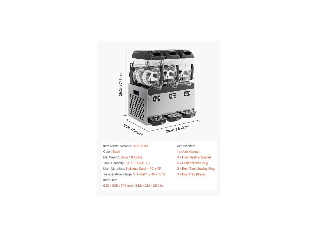 Objem nádrže: 3,17 gal x 3 / 12 l x 3,Hlavní materiály: nerezová ocel + ABS + PC,Číslo modelu položky: XRJ12LX3,Teplotní rozsah: 5℉ ~ 59℉ / -15℃ ~ 15℃,Čistá hmotnost: 114,6 lbs / 52 kg,Rozměry výrobku: 24,8 x 21,1 x 29,3 palce / 630 x 535 x 745 mm