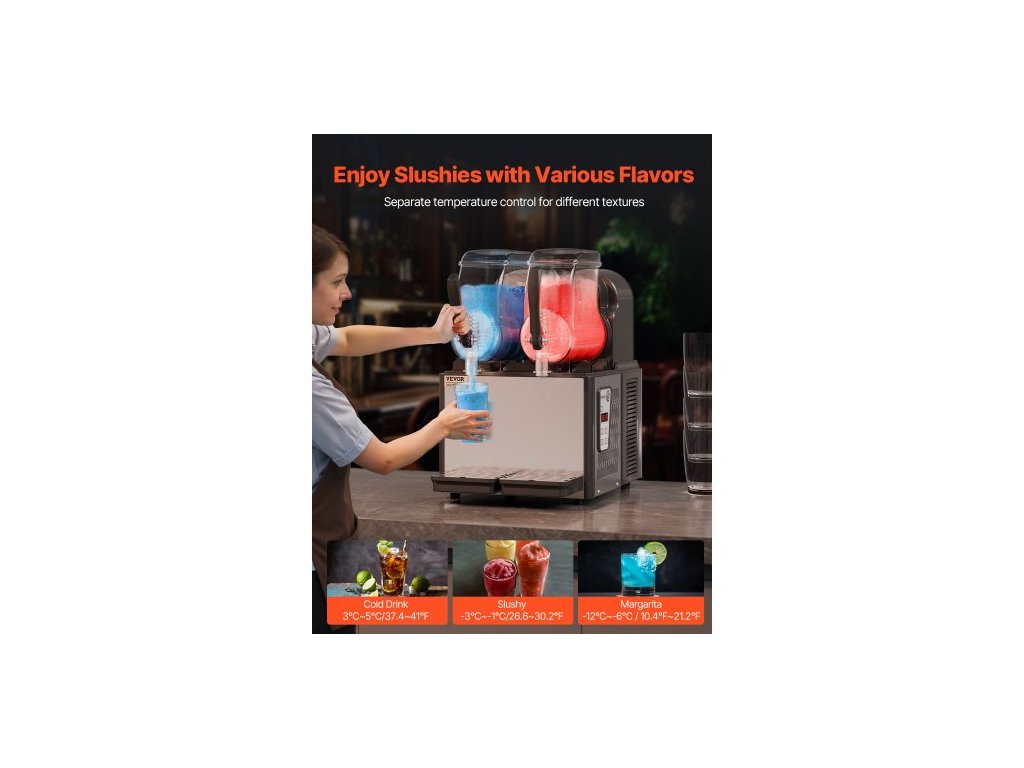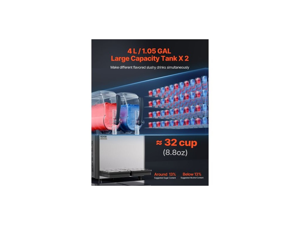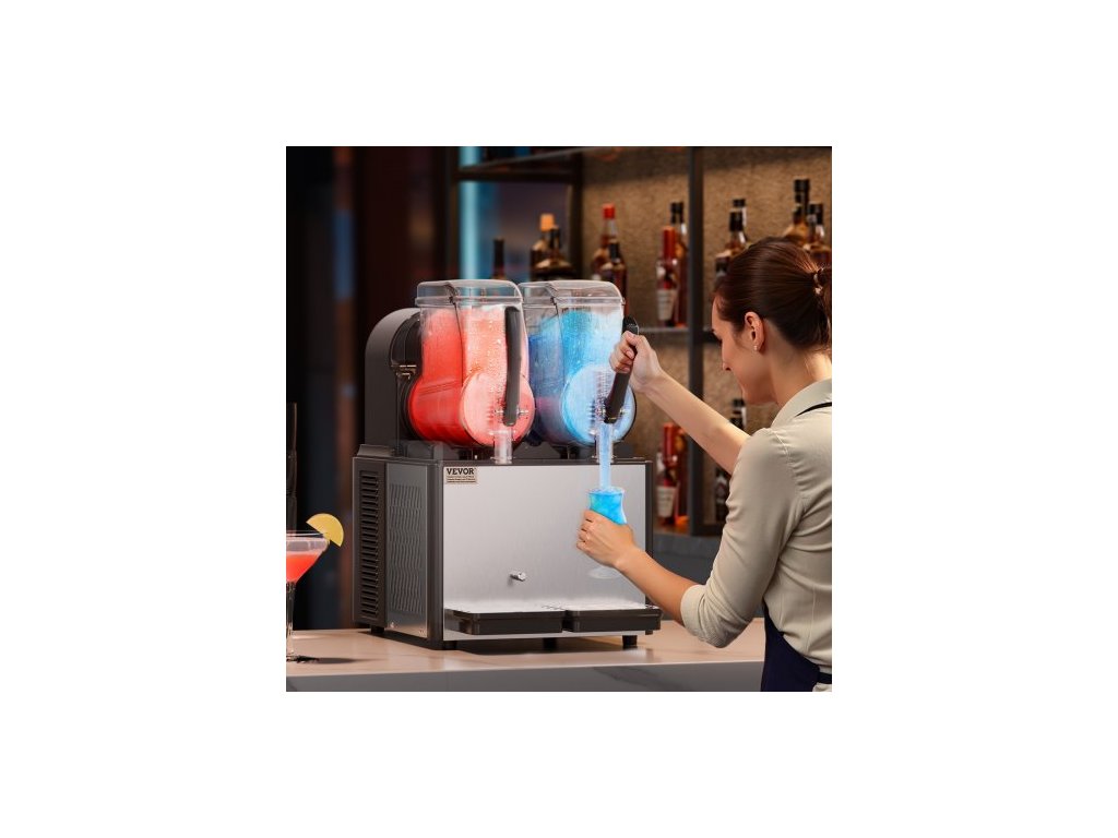 Komerční výrobník ledové břečky, výrobník mražených nápojů s dvojitou nádrží 4Lx2, výrobník mražených nápojů Margarita Smoothie z nerezové oceli na 32 šálků, výrobník ledové břečky pro domácí párty, restaurace, kavárny, baryMini výrobník ledové břečky