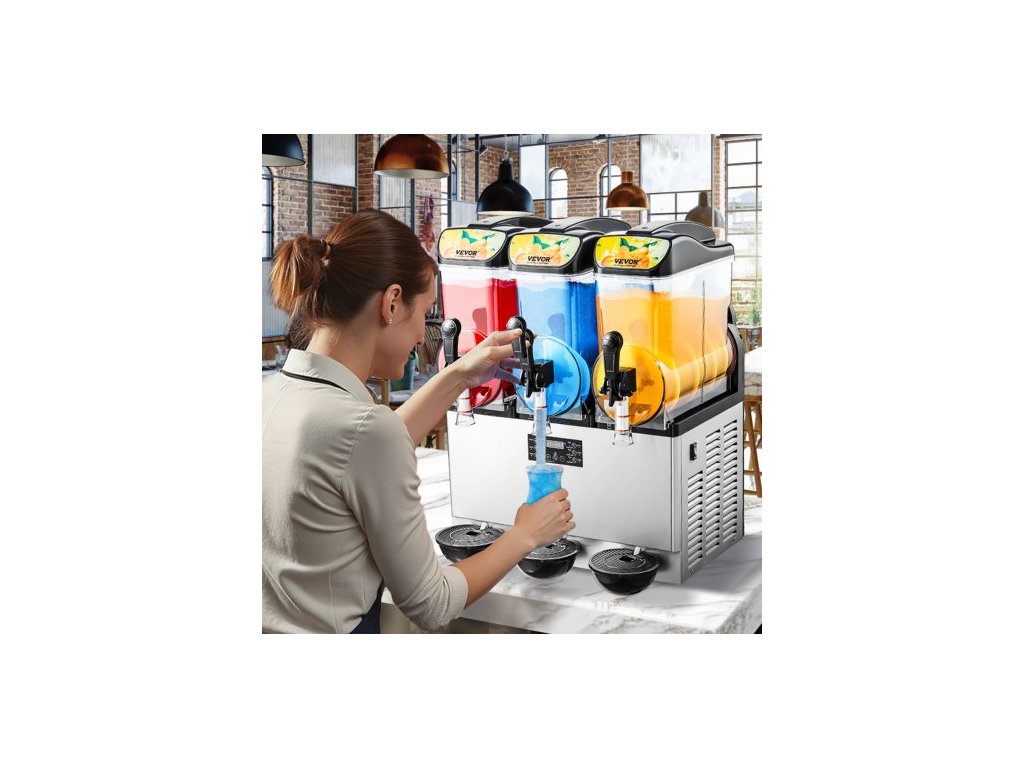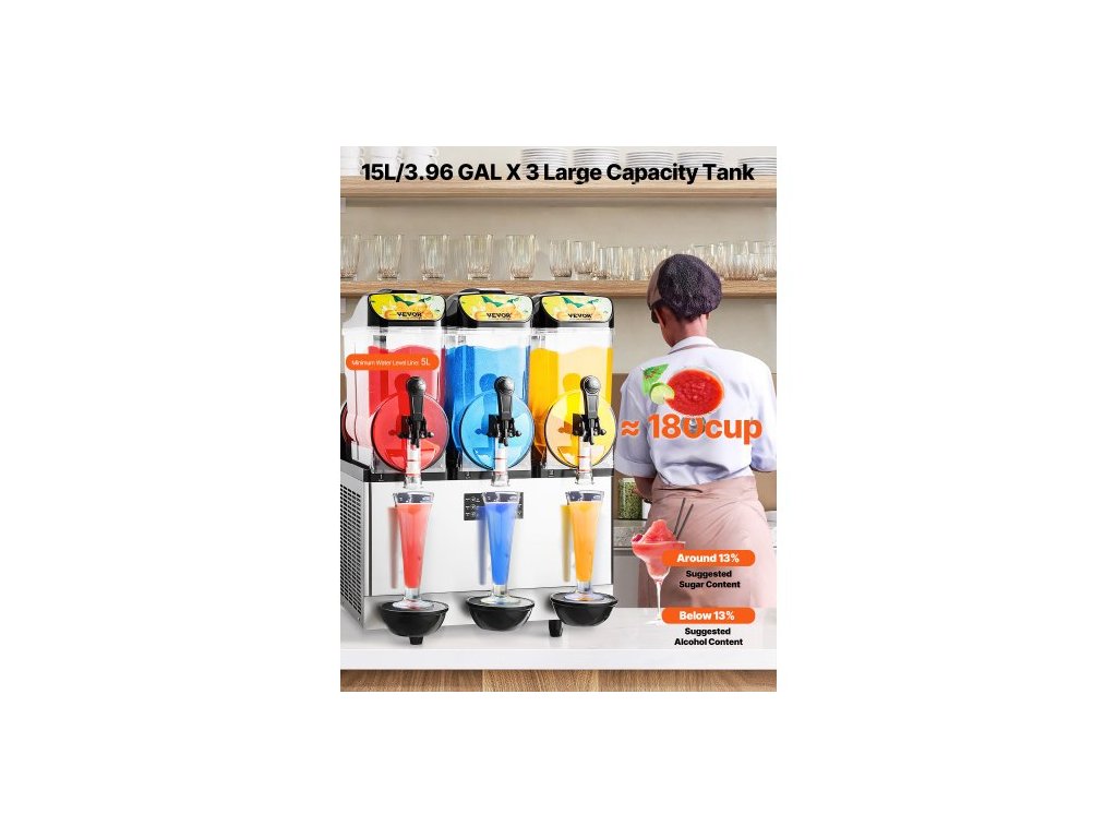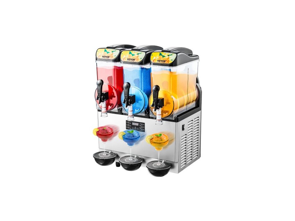 Komerční výrobník mražených nápojů, 15Lx3 trojitý zásobník na ledovou kaši, 180 šálků nerezového smoothie Margarita, výrobník ledové kaše pro domácí párty, restaurace, kavárny, baryProtikapací kohoutek