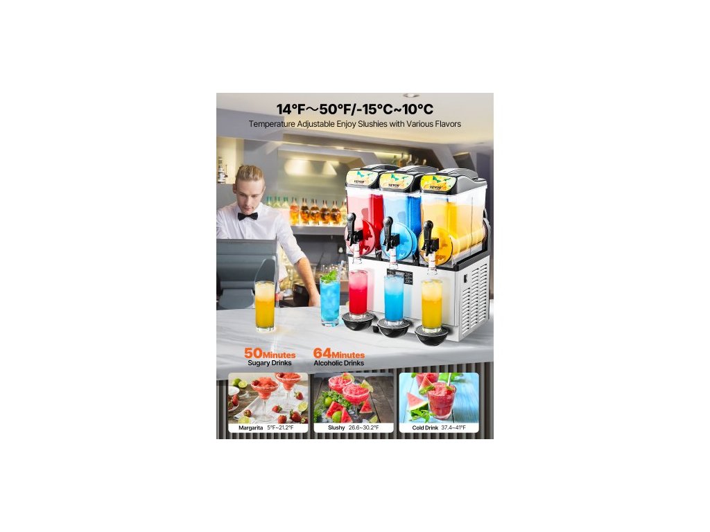 Objem nádrže: 3,96 gal x 3 / 15 l x 3,Materiál míchadla: Potravinářský PP,Barva: Černá,Číslo modelu položky: X-450,Materiál válce výparníku: Potravinářská nerezová ocel 304,Teplotní rozsah: 14℉ ~ 50℉ / -10℃ ~ 10℃,Materiál pláště: Nerezová ocel 201,Rozměry produktu: 20,67 x 23,82 x 32,76 palce / 525 x 605 x 832 mm, Čistá hmotnost: 54,3 kg