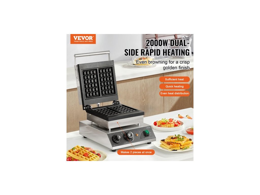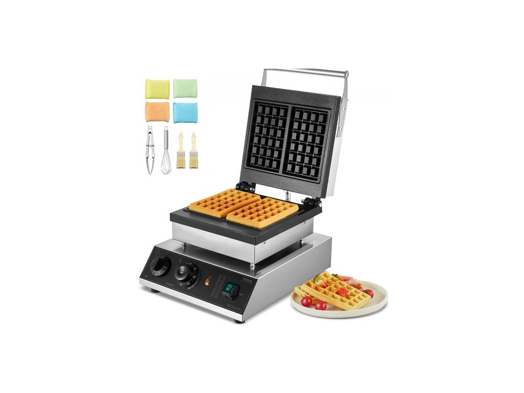 Komerční výrobník vaflí, 2ks obdélníkový stroj na vafle, 2000W nepřilnavý nerezový belgický vaflovač s regulací teploty a času, rukojeť, pro restauraci, pekárnu, bar a rodinu