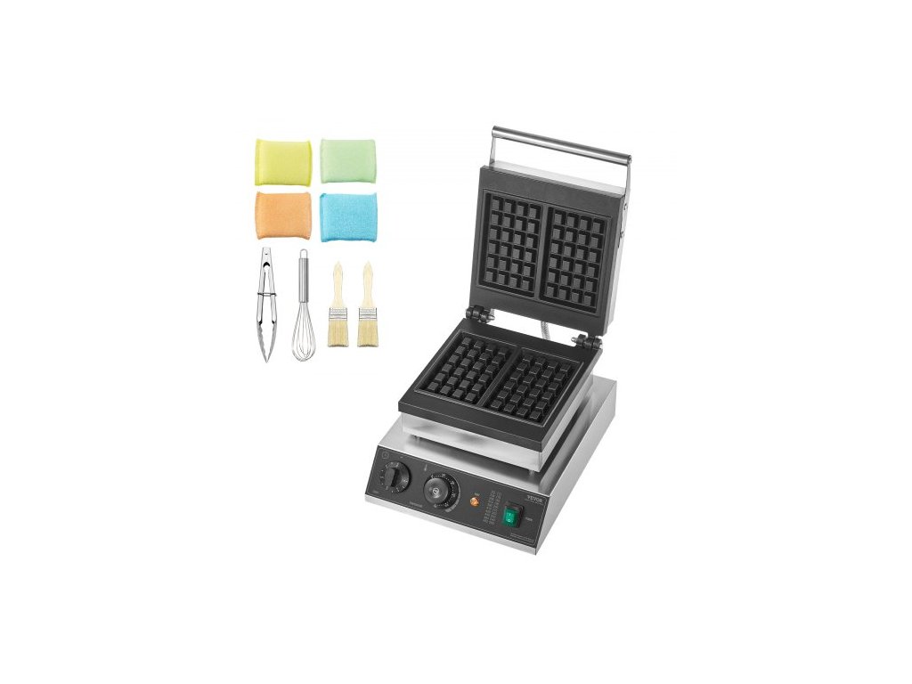 Komerční výrobník vaflí, 2dílný obdélníkový pekáč vaflí, 2000W belgický pekáč vaflí z nerezové oceli s nepřilnavým povrchem a regulací teploty a času, rukojeť, pro restaurace, pekárny, bary a rodinné domyProfesionální pekáč vaflí