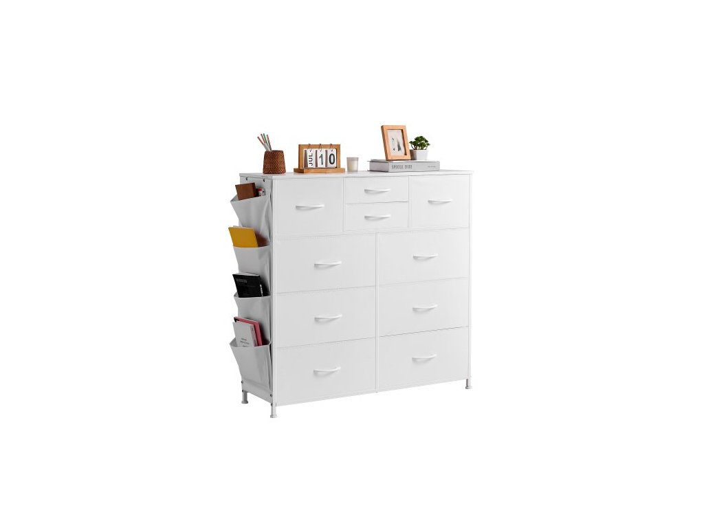 Komoda s 10 zásuvkami, látková komoda s přihrádkami na látky, úložné zásuvky do skříně s snadnou rukojetí a robustním ocelovým rámem, věž s látkovým úložným prostorem do ložnice, chodby, skříně, dětského pokoje, bíláStylová bytová dekorace