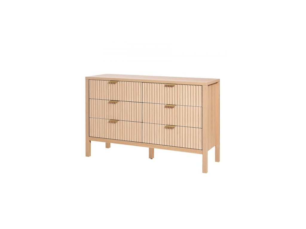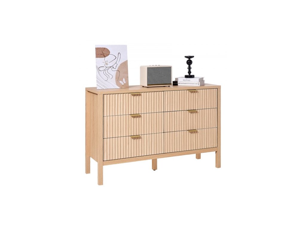 Komoda se 6 vroubkovanými zásuvkami, dřevěná komoda s posuvným a protipřevrhovacím mechanismem, moderní minimalistická komoda, úložný prostor do obývacího pokoje, chodby, ložnice, vstupní haly, světlé dřevo