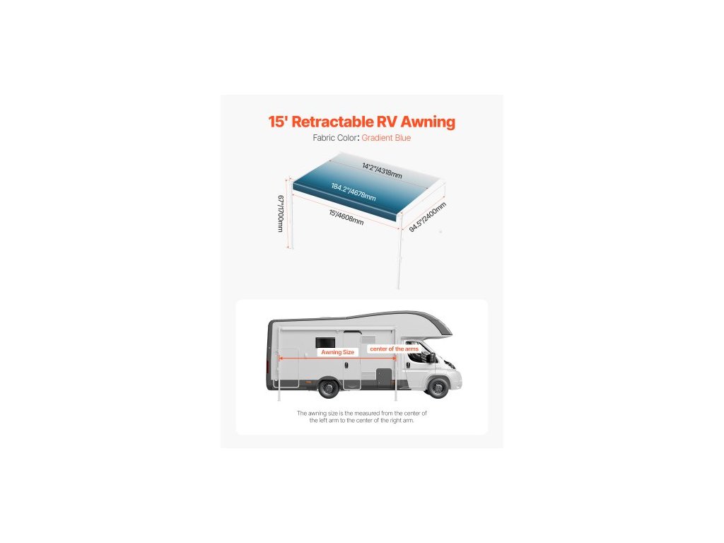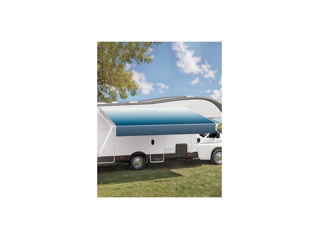 Kompletní sada manuální markýzy pro obytné vozy, 15' zatahovací markýza s rámem z hliníkové slitiny, venkovní markýza pro přívěsy, vhodná pro většinu obytných vozů (modrá barva)