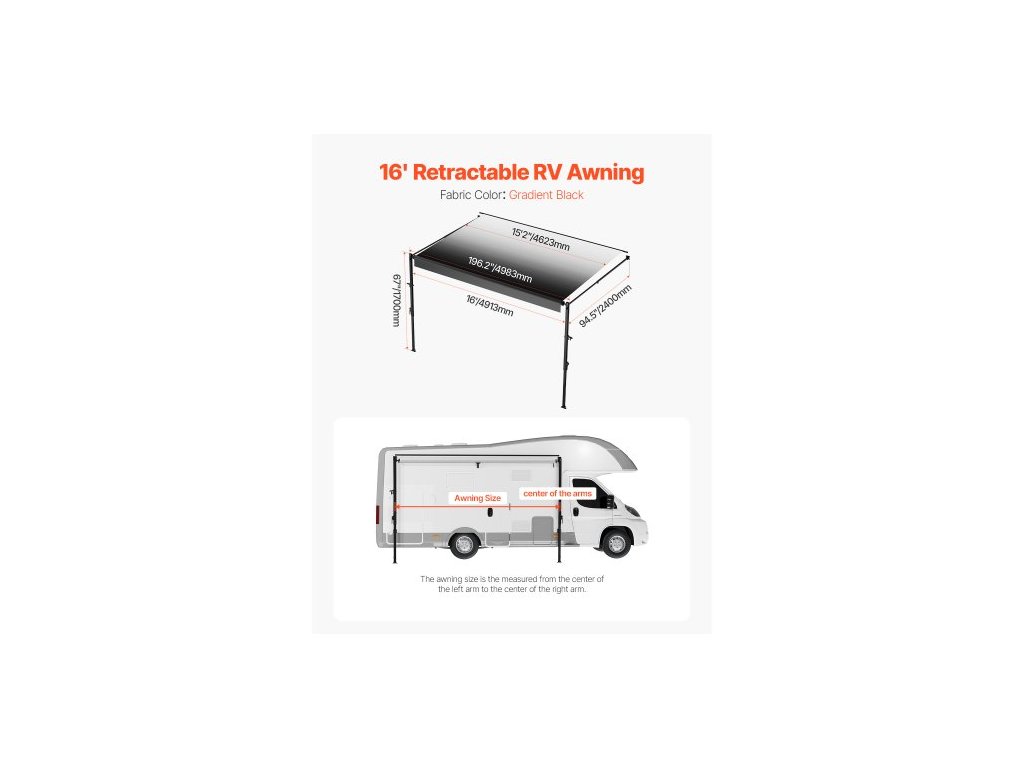 Kompletní sada manuální markýzy pro obytné vozy, 16' zatahovací markýza s rámem z hliníkové slitiny, venkovní markýza pro přívěsy, vhodná pro většinu obytných vozů (černá)