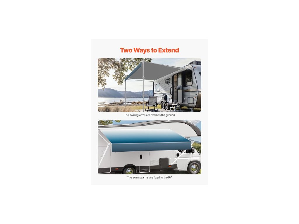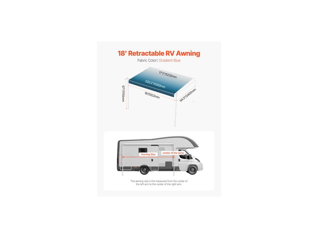 Kompletní sada manuální markýzy pro obytné vozy, 18' zatahovací markýza s rámem z hliníkové slitiny, venkovní markýza pro přívěsy, vhodná pro většinu obytných vozů (modrá barva)