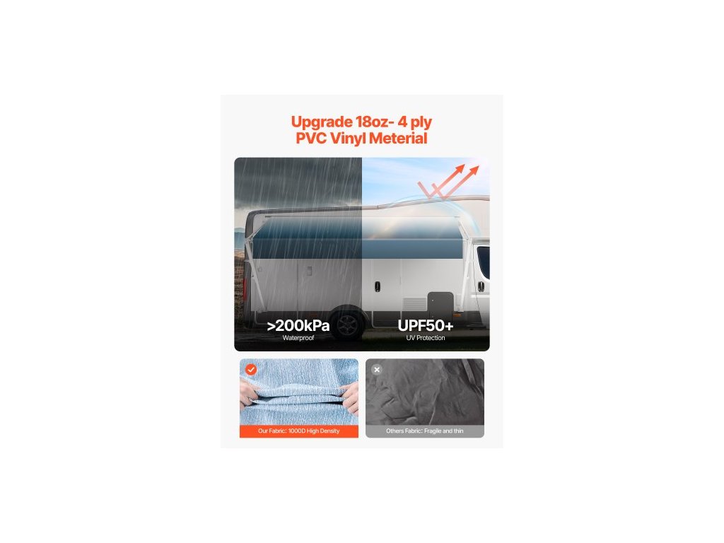 Kompletní sada markýzy pro obytné vozy, 18' zatahovací markýza s rámem z hliníkové slitiny, venkovní markýza pro přívěsy, vhodná pro většinu obytných vozů (modrá barva)Vodicí kolečka dveří