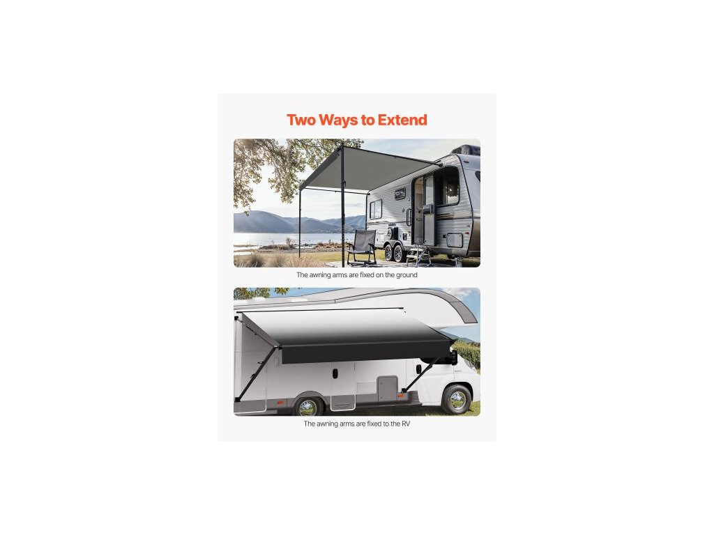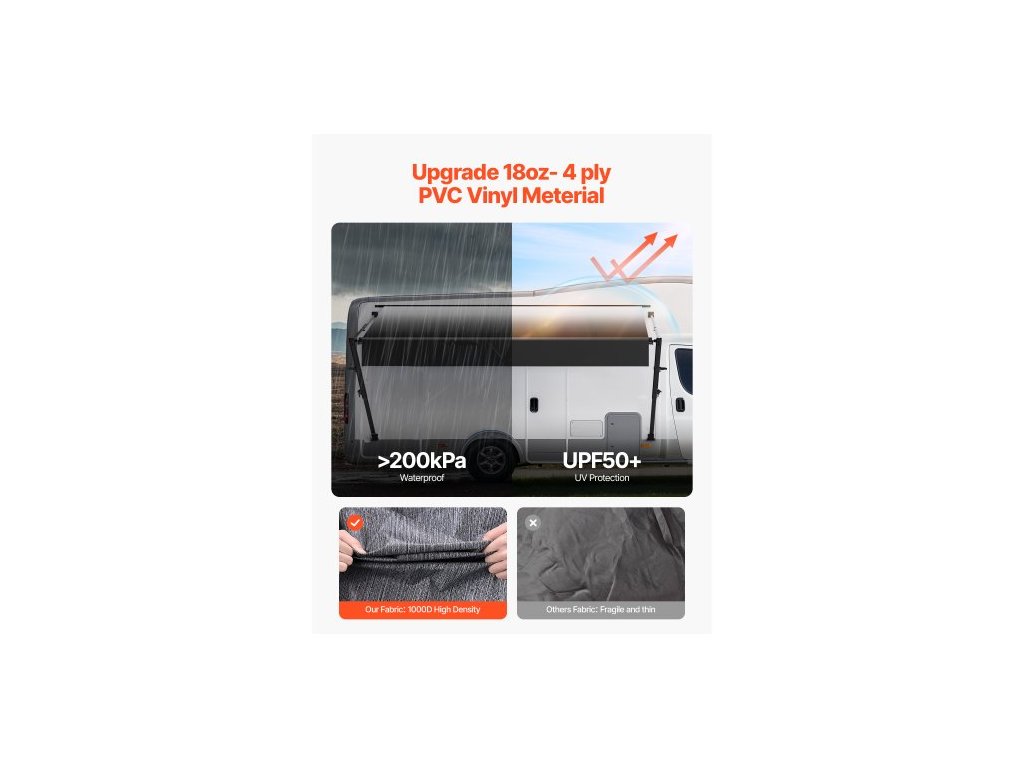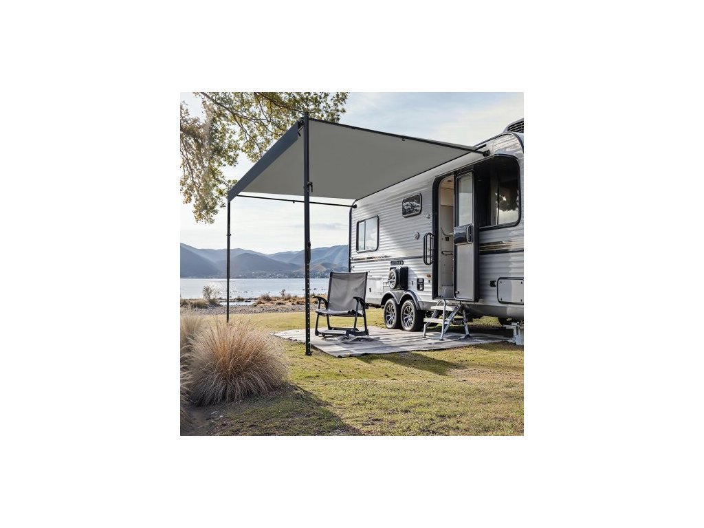 Kompletní sada markýzy pro obytné vozy, 20' zatahovací markýza s rámem z hliníkové slitiny, venkovní markýza pro přívěsy, vhodná pro většinu obytných vozů (černá barva)Vodicí kolečka dveří