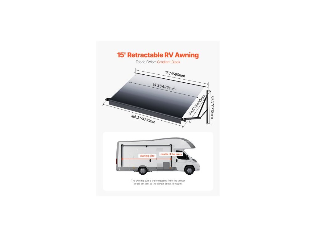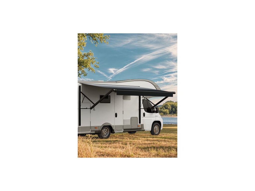 Kompletní sada motorizované markýzy pro obytné vozy, 15' zatahovací markýza s rámem z hliníkové slitiny, venkovní markýza pro přívěsy, vhodná pro většinu obytných vozů (černá)Hliníkový rám