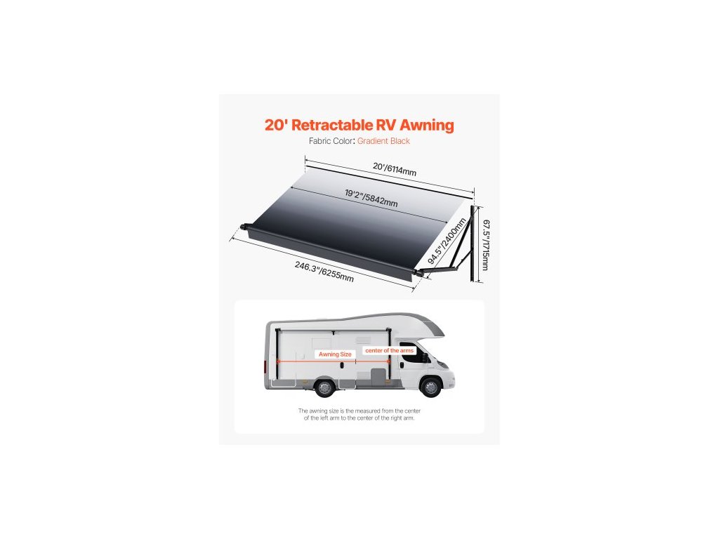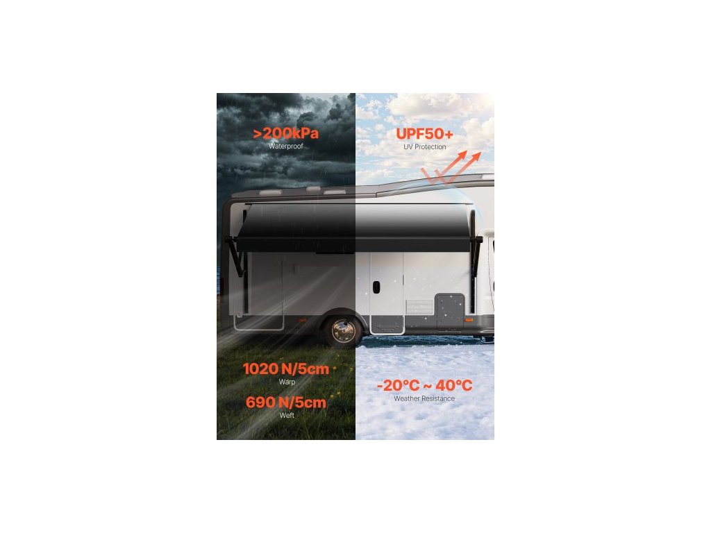 Kompletní sada motorizované markýzy pro obytné vozy, 20' zatahovací markýza s rámem z hliníkové slitiny, venkovní markýza pro přívěsy, vhodná pro většinu obytných vozů (černá)Hliníkový rám
