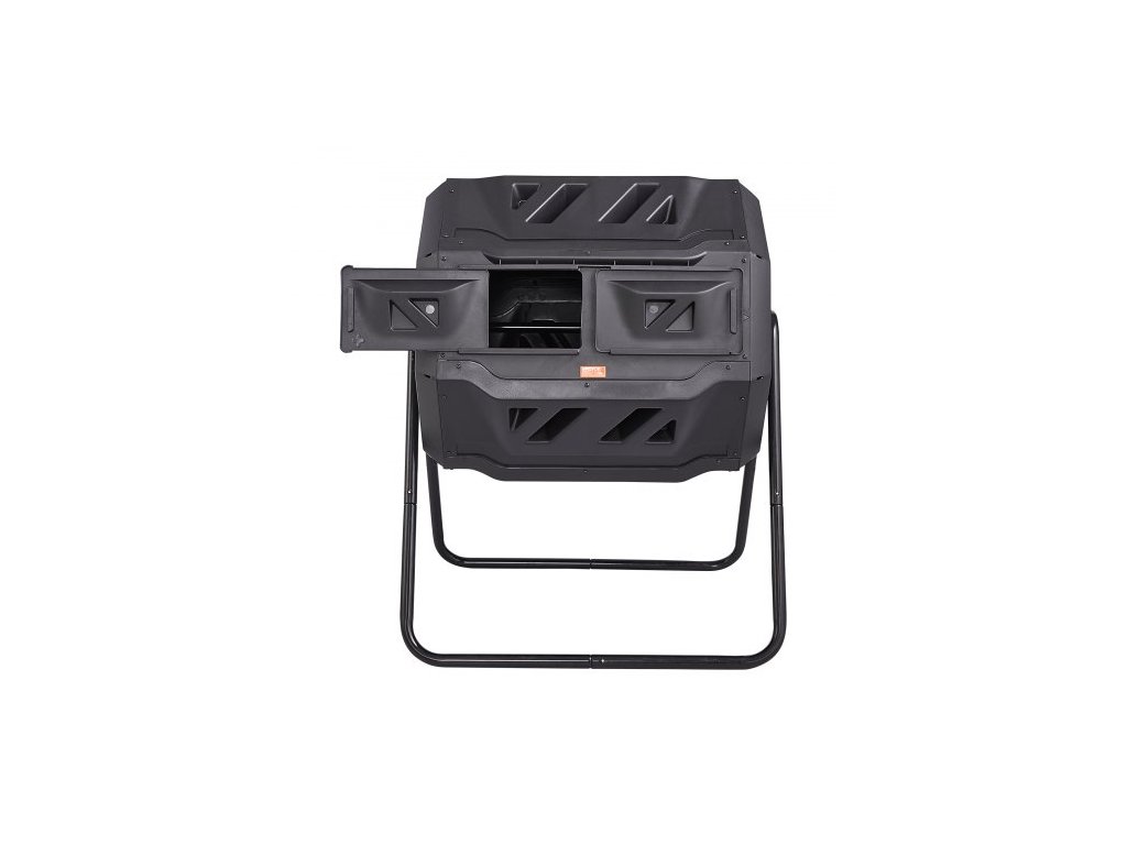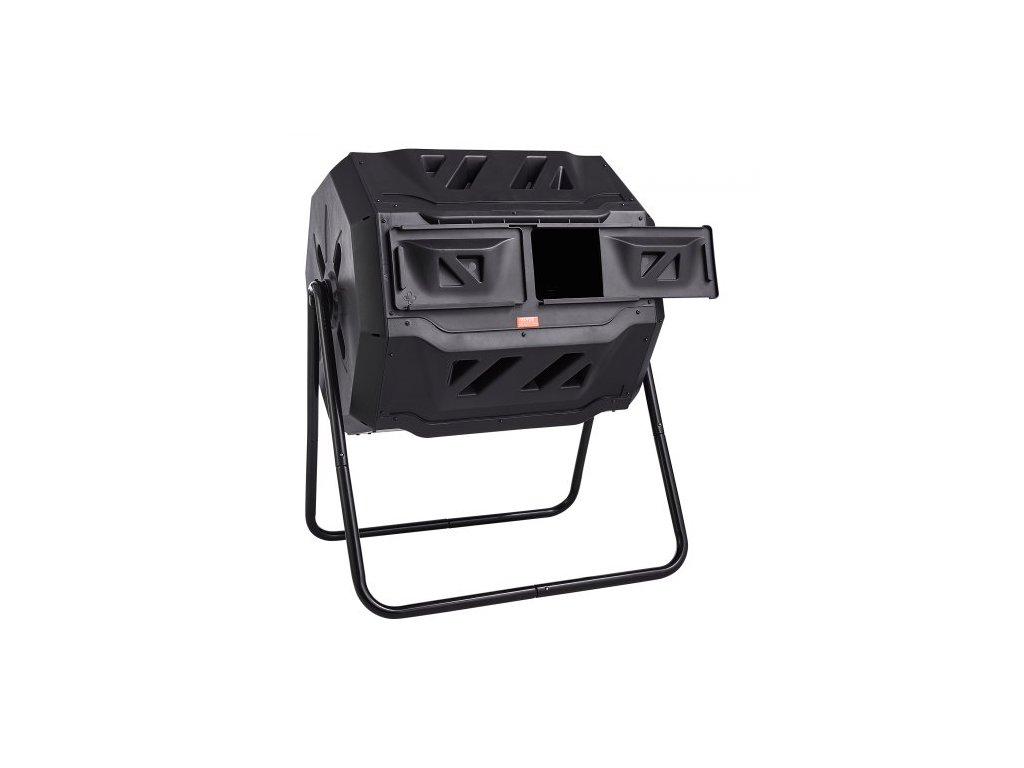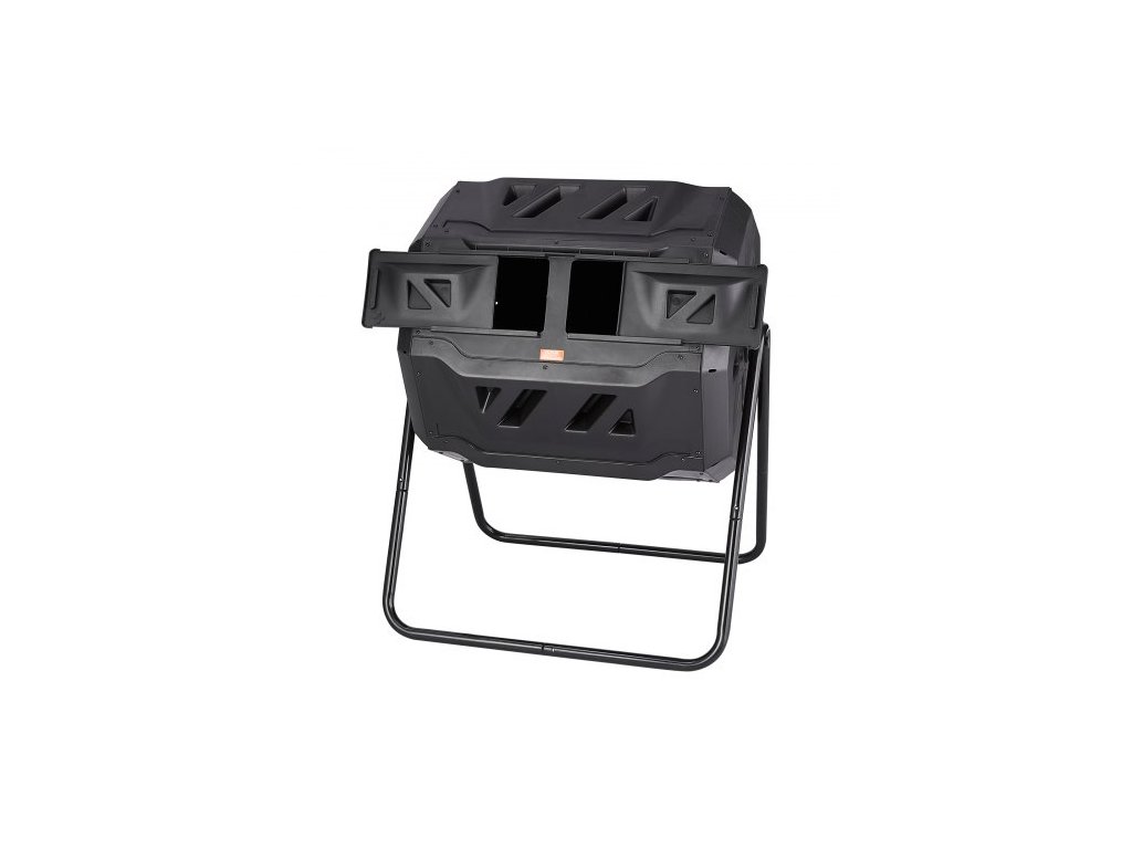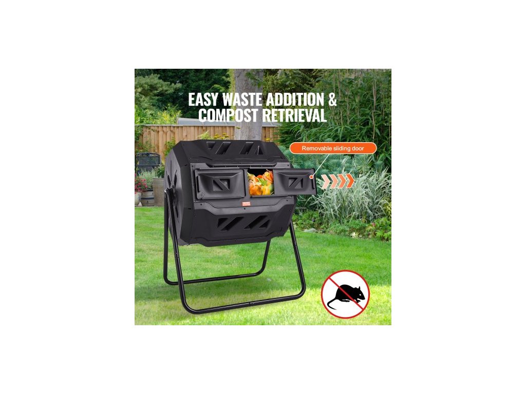 Kompostér , dvoukomorový kompostér o objemu 162,8 l, velký rotační kompostér s 2 posuvnými dvířky a ocelovým rámem, kompostér bez BPA pro zahradu, kuchyň, dvůr, venkovní použitíDvoukomorový design