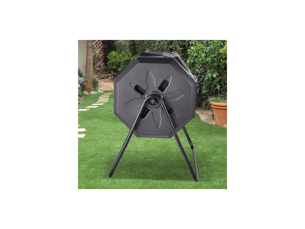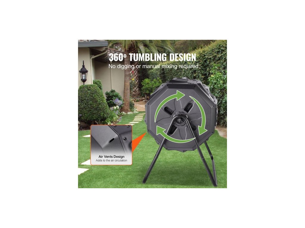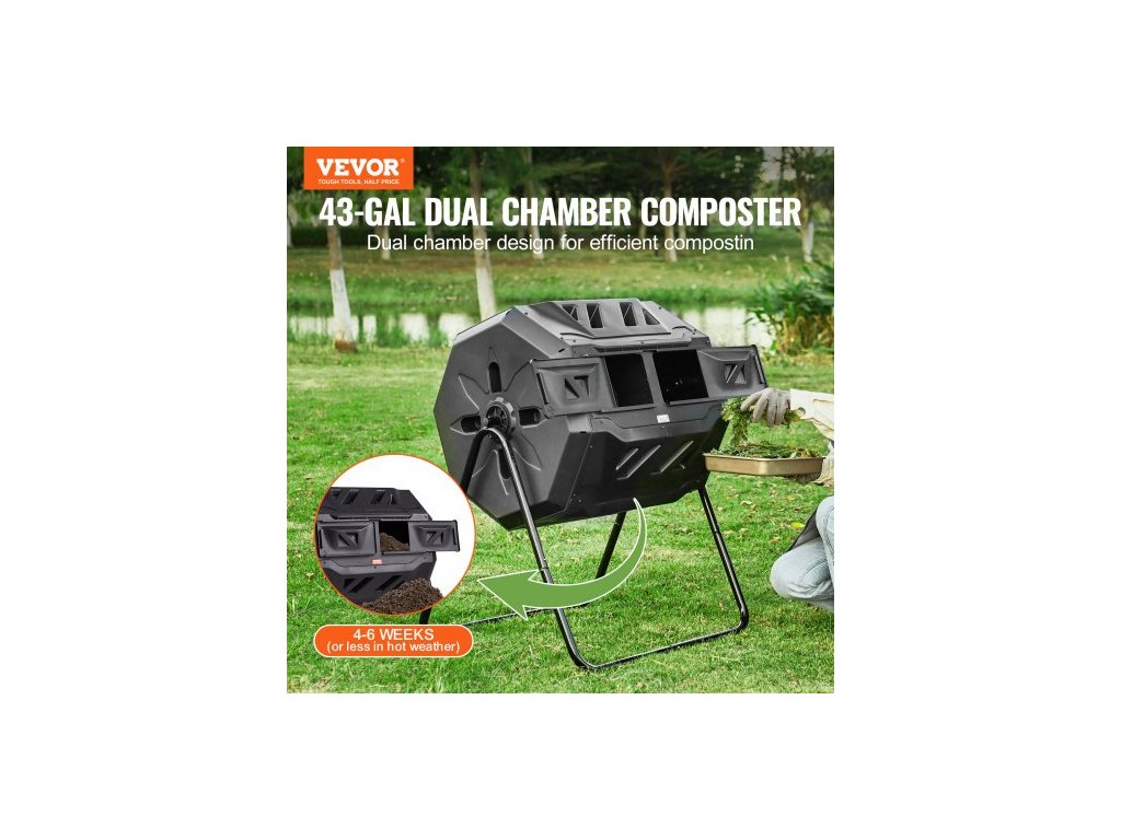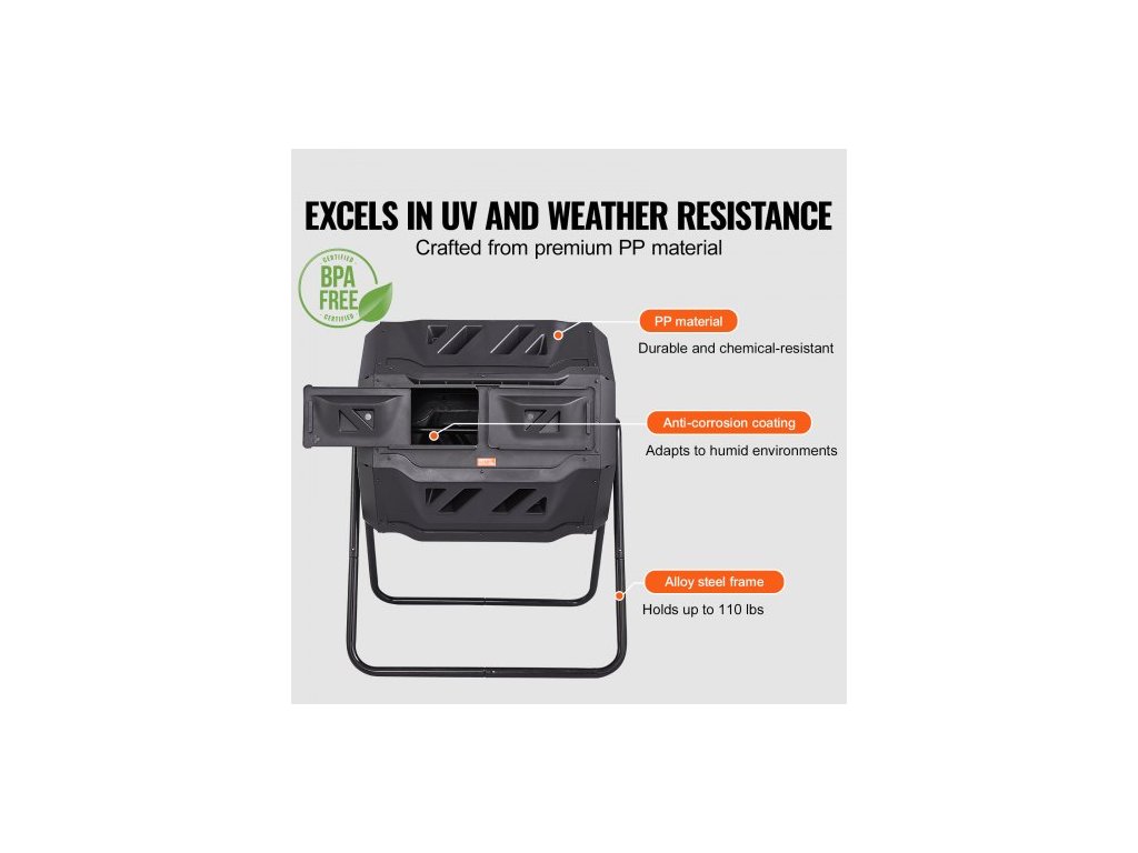 Kompostér , dvoukomorový kompostér o objemu 162,8 l, velký rotační kompostér s 2 posuvnými dvířky a ocelovým rámem, kompostér bez BPA pro zahradu, kuchyň, dvůr, venkovní použitíDvoukomorový design